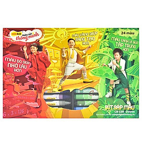 Sáp Bóp 24M CR-C09 - Bao bì hộp sản phẩm Sáp màu CR-C09 được làm theo tông màu Colokit, thiết kế theo sở thích của các bé. - 24 cây sáp có 24 màu (khác nhau) thông dụng trên thị trường, được cố định trong khay định hình, tránh trường hợp bị lẫn màu khi tô. - Mẫu mã đẹp, tông màu tươi sáng phù hợp cho các bé. - Sản xuất đạt tiêu chuẩn theo tiêu chuẩn xuất khẩu sang Châu Âu. - Khi vẽ/tô rất mịn, ăn màu tốt trên giấy vẽ thông dụng. - An toàn sức khỏe: Màu vẽ không gây dị ứng cho da, không độc hại khi các bé lỡ ngậm phả - Hình chữ nhật, hộp giấy, bên trong có khay định hình giữ các cây sáp được cố định tránh trường hợp vụng về hay làm mất của trẻ để các cây sáp không bị rơi ra ngoài. - Có tem dán trên thân mỗi cây sáp giúp nhận diện để phân biệt màu sắc rõ ràng hơn. - Tem nhận diện màu rõ ràng, phù hợp với lứa tuổi nhỏ -> tạo kích thích màu sắc, giúp bé nhận diện màu sắc tốt hơn .