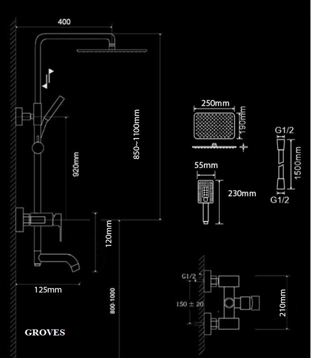 - Bộ sản phẩm gồm: 1 củ sen có vòi xả phụ, 1 dây dẫn nước, 1 tay sen, 1 bát sen, 1 ống đứng & các đầu ốc đi kèm.
