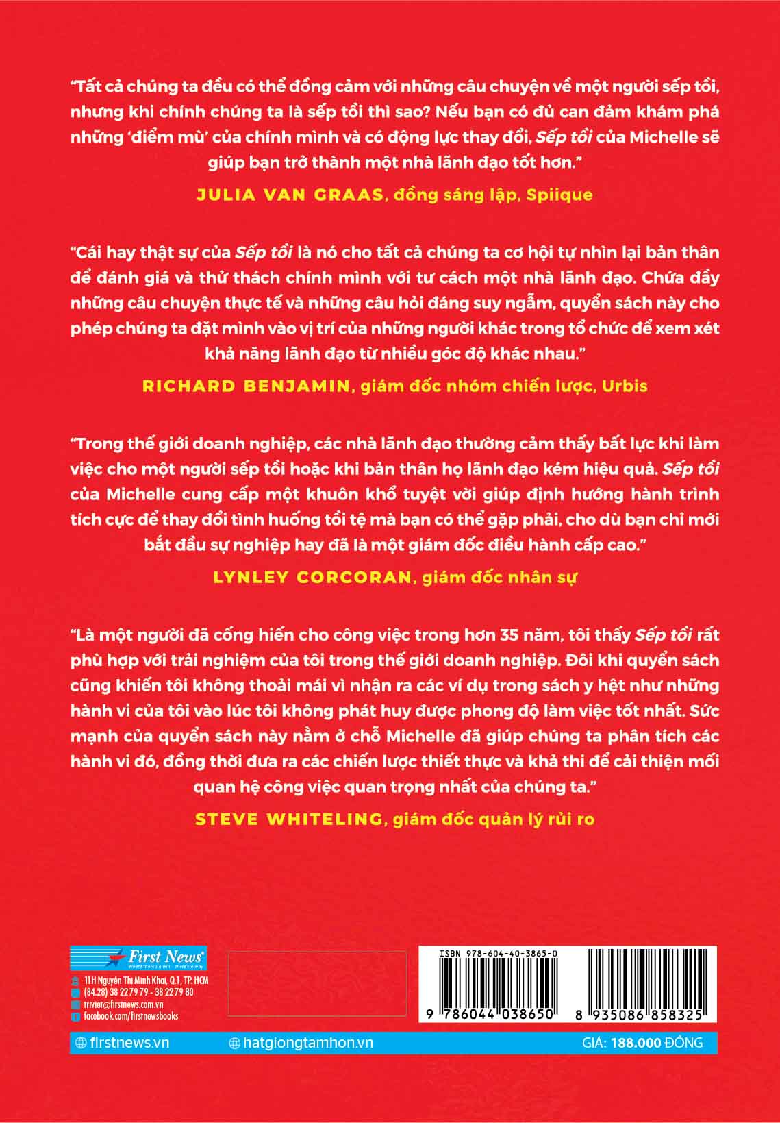 Trong “Sếp tồi”, Michelle Gibbings vừa đề cao những cảm xúc và sự tự chủ của mỗi cá nhân, vừa khuyến khích mỗi người dũng cảm nhìn ra những “điểm mù” của chính mình và thay đổi để cải thiện tình hình. Cô cũng nhắc nhở bạn đọc hãy thấu hiểu cho những cá nhân khác, dù đó là sếp hay nhân viên cấp dưới của mình, bởi thực tế ai cũng muốn làm tốt công việc của mình, chỉ là họ chưa có điều kiện hay chưa biết cách mà thôi.