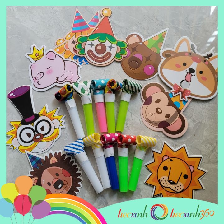 Mua tại TiktokSet 10 kèn thổi có tag giấy nhiều hình dễ thương - Phụ Kiện Sinh Nhật cho bé