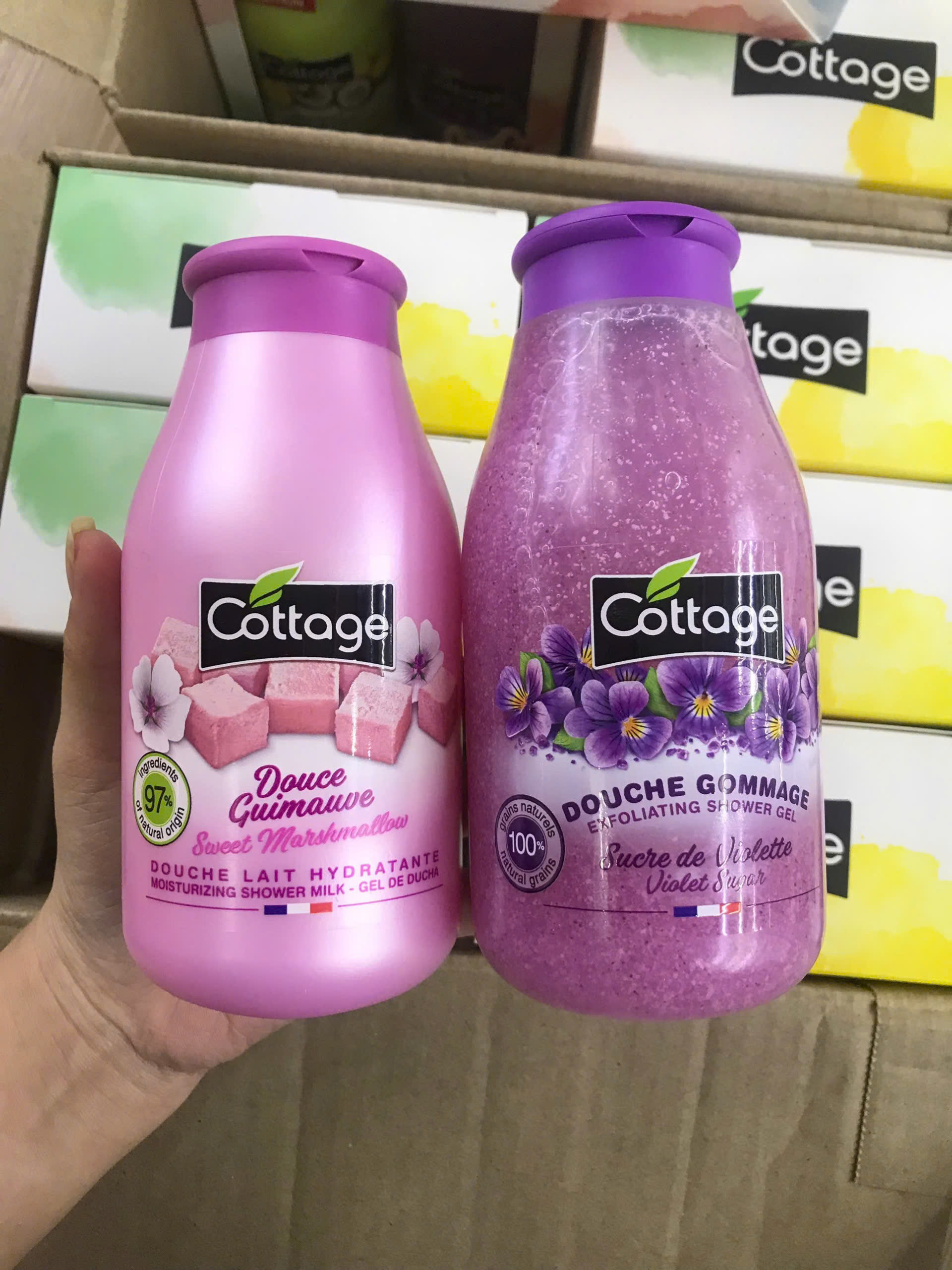 Cottage Set 2 chai sữa tắm kèm tẩy tế bào chết Pháp 250ml + 270ml là sản phẩm thuộc thương hiệu Cottage danh tiếng của Pháp, được thiết kế dành riêng cho những ai yêu thích sự tinh tế và sang trọng trong trải nghiệm tắm gội.   Đặc điểm nổi bật: – Công thức độc đáo: Kết hợp hài hòa giữa các thành phần dưỡng chất quý giá từ thiên nhiên cùng công nghệ hiện đại, Cottage Set mang đến hiệu quả làm sạch da vượt trội, đồng thời nuôi dưỡng da mềm mại, mịn màng từ sâu bên trong. – Hương thơm quyến rũ: Lấy cảm hứng từ những loài hoa cỏ quý hiếm tại Pháp, Cottage Set sở hữu đa dạng các mùi hương tinh tế, nhẹ nhàng, lưu giữ dài lâu trên cơ thể, mang đến cho bạn những giây phút thư giãn tuyệt vời sau mỗi lần sử dụng. – Thiết kế sang trọng: Sản phẩm được thiết kế với chai dạng pump tiện lợi, cùng dung tích 250ml cho sữa tắm và 270ml cho tẩy tế bào chết, đáp ứng nhu cầu sử dụng trong thời gian dài .