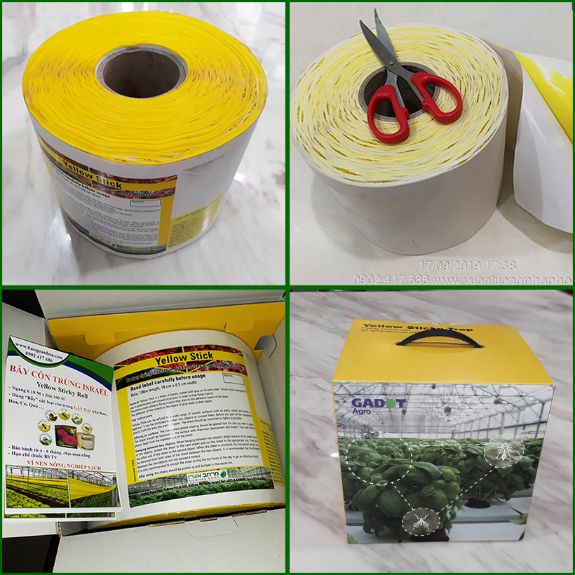 - Keo Dính Vàng Côn trùng Israel (Sticky Yellow Roll) sử dụng với chất lượng keo trên 8 tháng đến 12 tháng trong nhà kính (chịu mưa nắng và nước tưới)