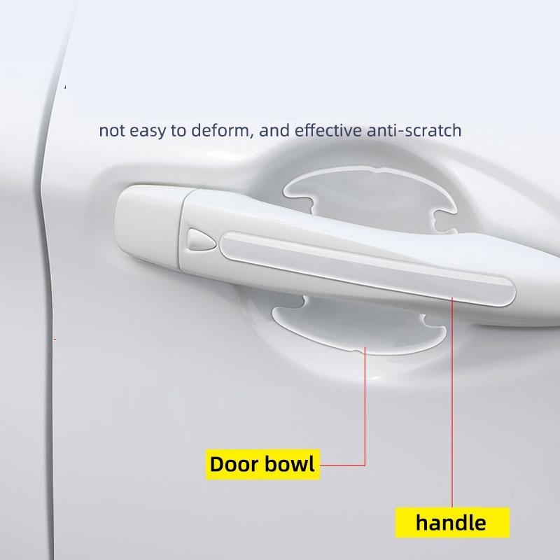 Miếng dán chống xước hõm, tay nắm cửa ô tô được làm từ chất liệu silicone trong suốt, giúp bảo vệ hõm tay nắm cửa ô tô không bị xước, giúp ô tô luôn sáng bóng.