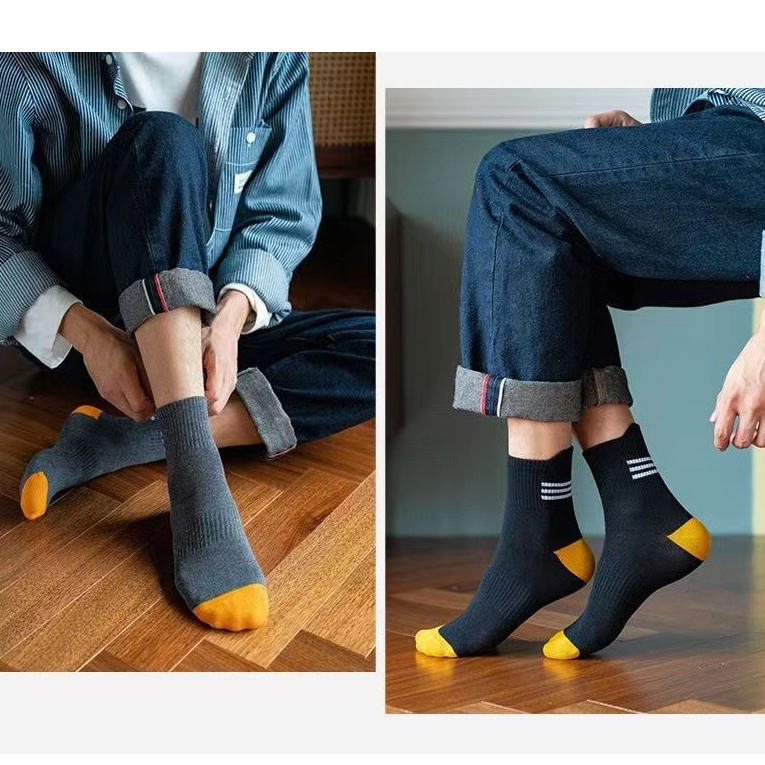 ✨Set 5 đôi tất nam 3 sọc cổ trung, tất nam phong cách vintage Hàn Quốc
