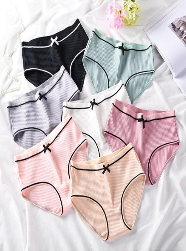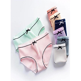 [Set 5 quần] Quần lót nữ Muji cotton gân tăm phối nơ xinh