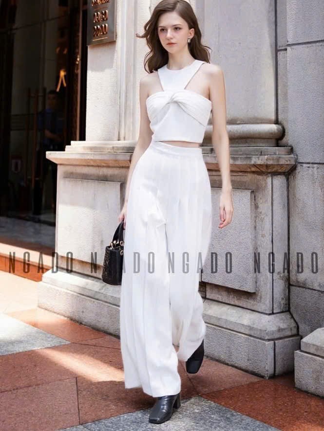 ✨Set áo quần trắng xếp ly NGADO , set áo quần dài , set áo quần kiểu Nữ