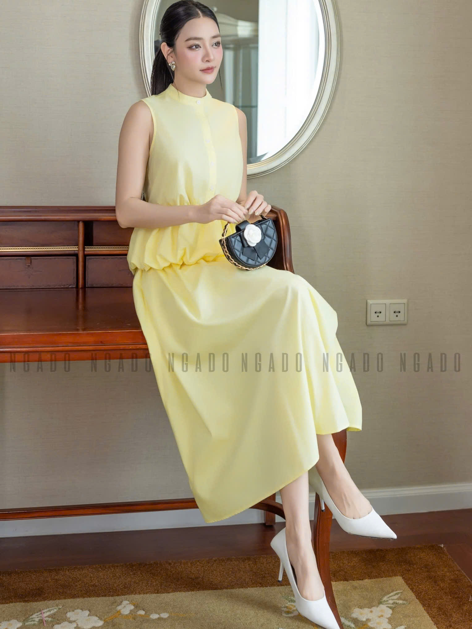 ✨Set áo váy vàng cổ trụ NGADO , set áo váy dài , set công sở , dự tiệc