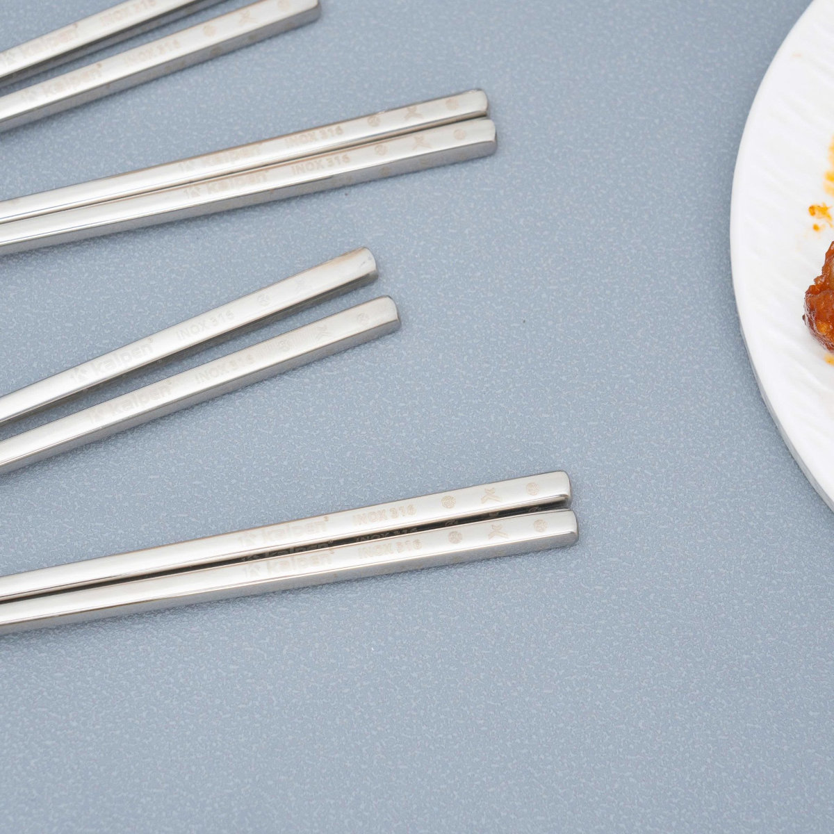 - Thân đũa inox Kalpen vuông, thuôn nhỏ dần về đầu, chống trơn trượt khi cầm nắm . Đầu đũa chống trơn trượt hiệu quả