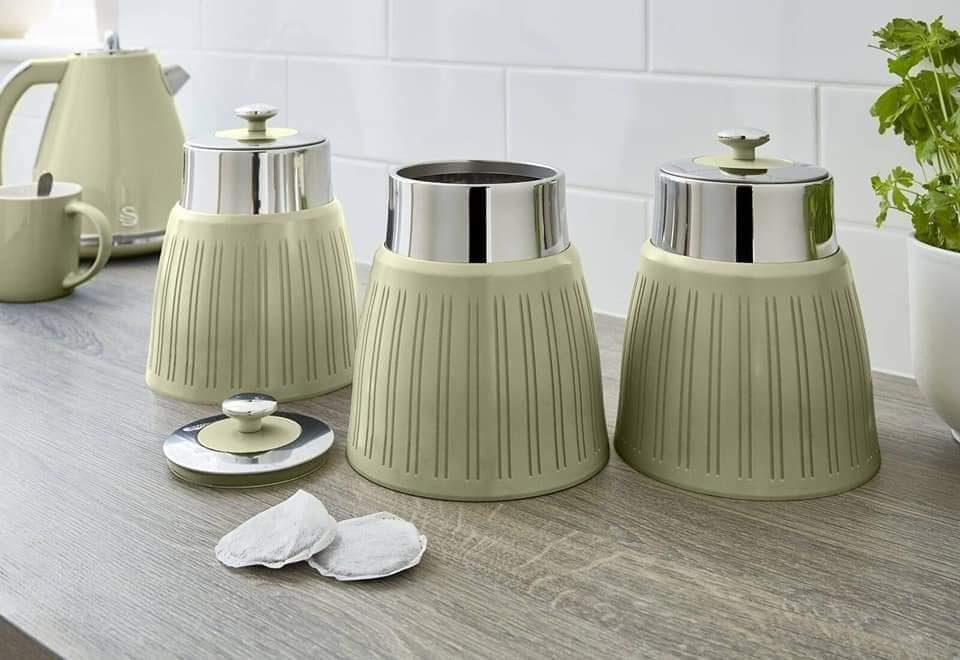 Giữ cho trà, cà phê và đường của bạn luôn tươi mới với bộ ba hộp Swan Retro. Thiết kế thực tế, thời trang và độc đáo của những chiếc hộp này tạo thêm nét