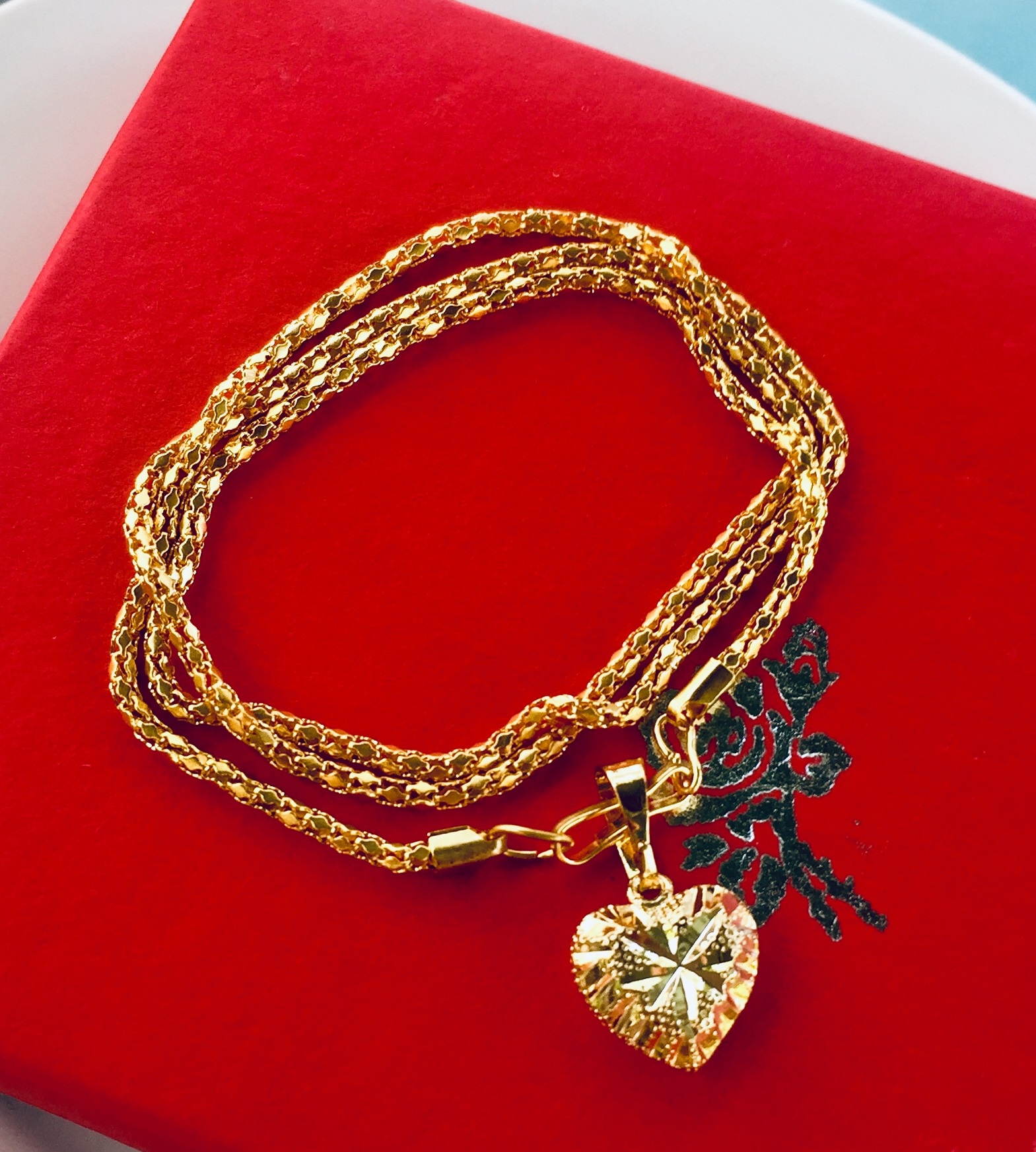 ✨Set Mặt Dây Chuyền Mạ Vàng 18K Đúc Hình Trái Tim Kim Cương, Kèm dây chuyền Mạ vàng 18K và hộp đựng trang sức.