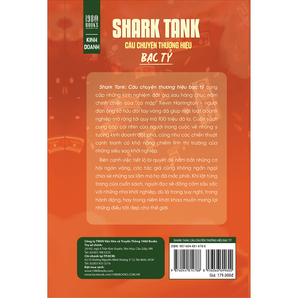Shark Tank: Câu chuyện thương hiệu bạc tỷ, bộ đôi tác giả Kevin Harrington, một trong những “cá mập” đầu tiên của chương trình ăn khách Shark Tank, và doanh nhân Mark Timm sẽ dẫn dắt độc giả vào một hành trình đầy lôi cuốn, tìm hiểu những ý tưởng kinh doanh và chiến thuật cạnh tranh có khả năng chiếm lĩnh thị trường của những siêu sao khởi nghiệp hàng đầu thế giới.