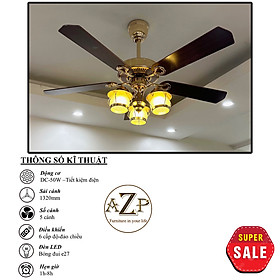 Siêu Sales QUẠT TRẦN AZP- 5 CÁNH GỖ, CÔNG XUẤT 50W, CÓ REMOTE- Hàng Nhập Khẩu Động cơ: DC - 50W - Tiết kiệm điện Sải Cánh: 1320MM Chất Liệu Cánh: gỗ thật Điều khiển: