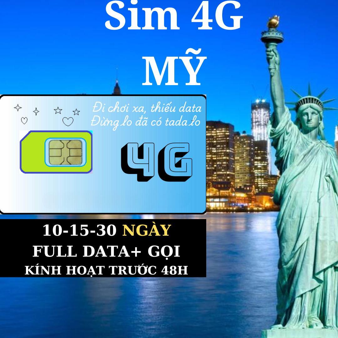 Giới thiệu Sim du lịch Mỹ - Là sim data 4G Mỹ dành cho khách du lịch, sim có sẵn dung lượng 4G. - Số ngày sử dụng tính từ lúc sim được kích hoạt,