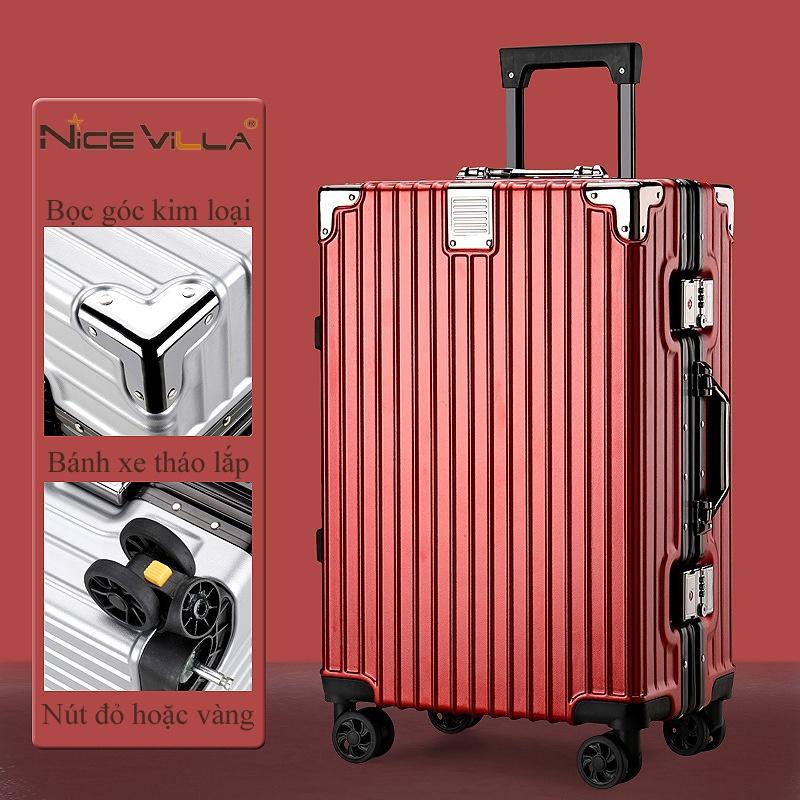 ✨[Size 20inch] Vali Khung Nhôm Vân Nhám Chống Trầy Xước NiceVilla