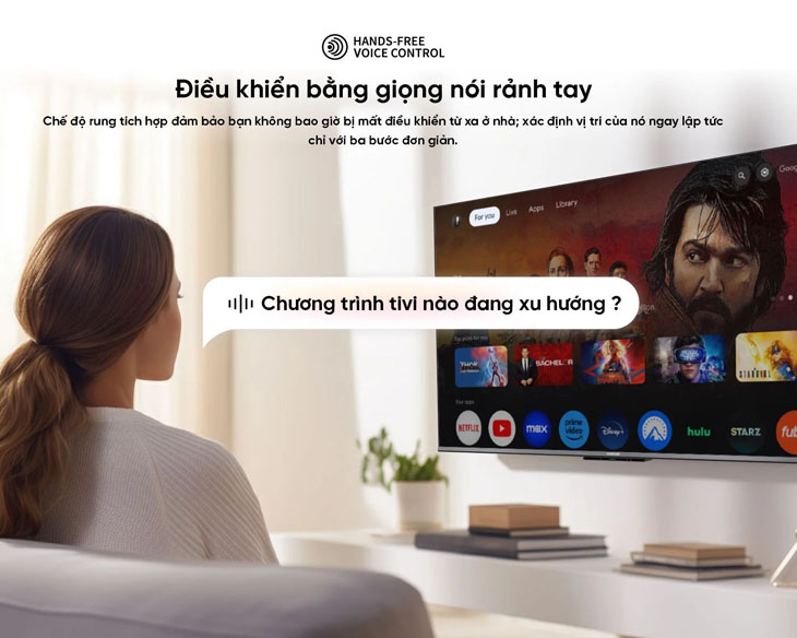 - Trợ lý Google Assistant: Điều khiển tivi bằng giọng nói thông qua lệnh "OK Google", giúp bạn dễ dàng điều chỉnh và tương tác với tivi.