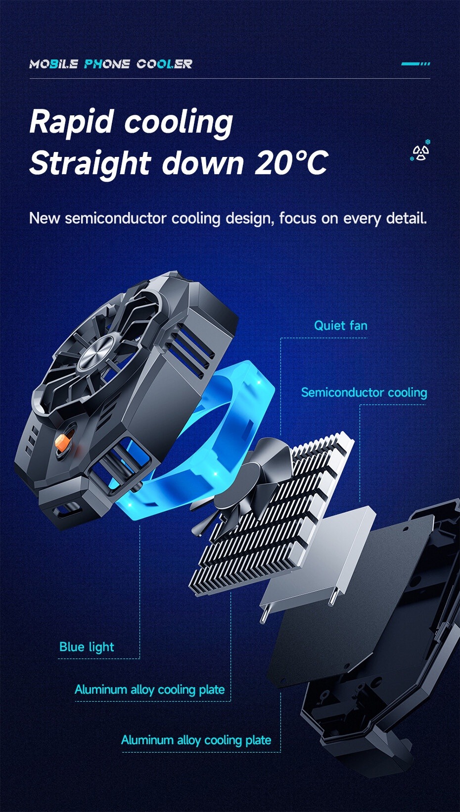 Sò lạnh tản nhiệt điện thoại GM10/GM26 - Thông số kỹ thuật GM26 1. Chất liệu: ABS + hợp kim nhôm + silicone 2. Công nghệ bề mặt: khắc họa tiết vân + chống oxy