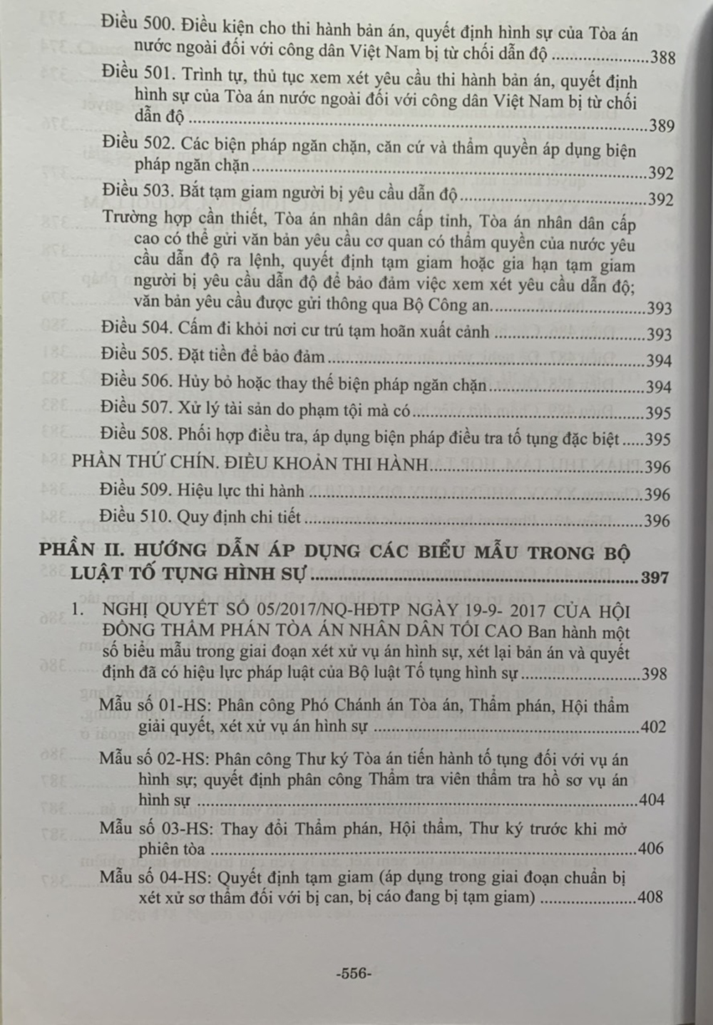 Cuốn sách gồm 9 phần, 510 điều, quy định trình tự, thủ tục tiếp nhận, giải quyết nguồn tin về tội phạm, khởi tố, điều tra, truy tố, xét xử và một số thủ tục