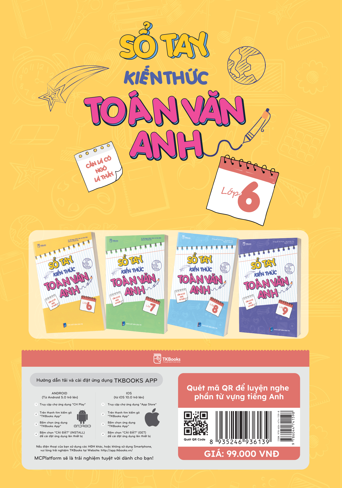 Tổng hợp các chủ đề từ vựng tiếng Anh theo từng đơn vị bài học, kèm phiên âm và nghĩa tiếng Việt, có kết hợp Audio luyện nghe trên ứng dụng TKBooks. Đồng thời, cuốn sách hệ thống lại toàn bộ kiến thức ngữ pháp trọng tâm có trong chương trình tiếng Anh Lớp 6, với phần giải thích chi tiết và ví dụ minh họa dễ hiểu.