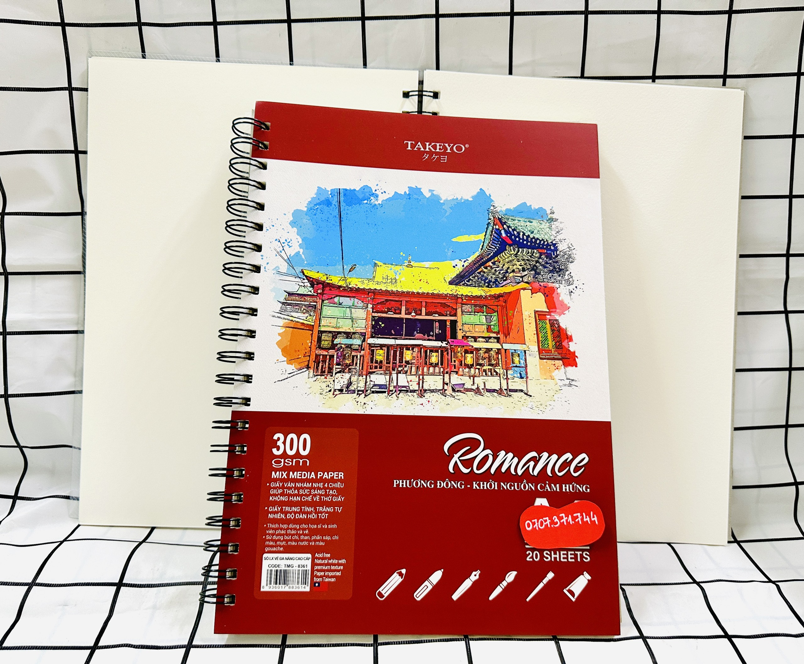 Mua tại TiktokSổ Vẽ Lò Xo Đa Năng Cao Cấp 20 Tờ Size A4-A5 Định Lượng Giấy 200GMS Và 300GMS Bìa Nhựa Chống Thấm Nước ROMACE TAKEYO, Sổ Vẽ Chuyên Dùng Cho Màu Nước: