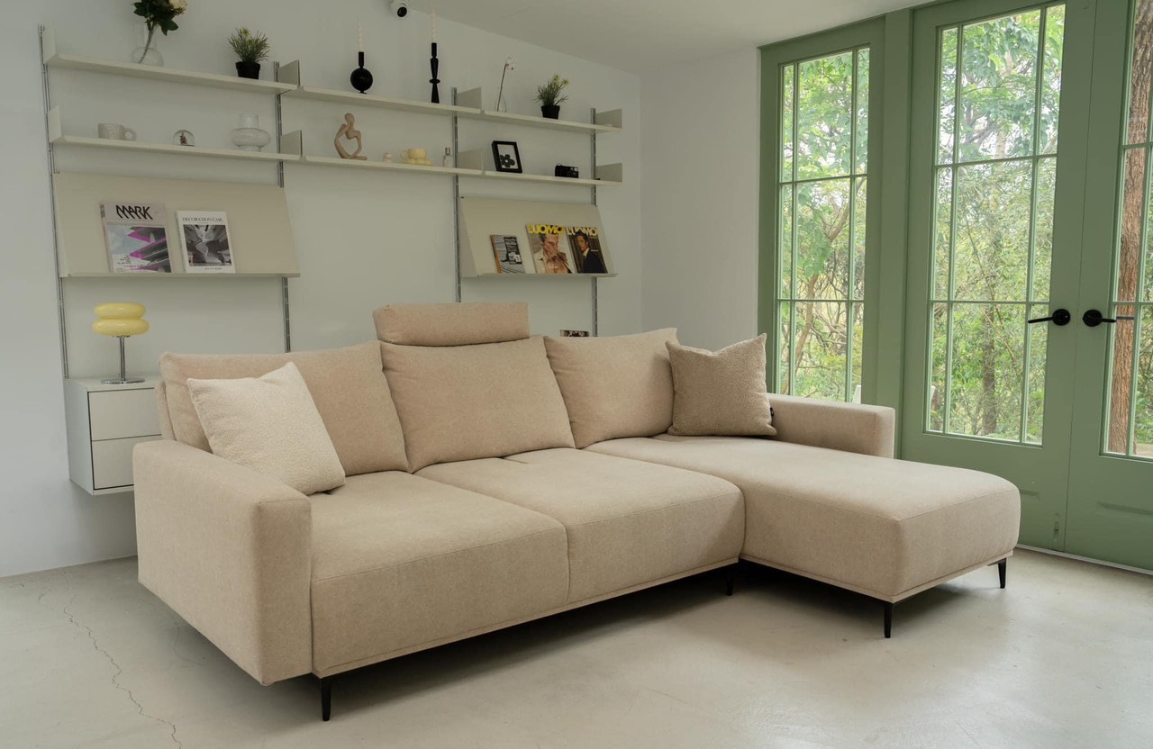 Khung ghế được làm bằng gỗ bền đẹpSofa góc phải L-Concept Juno (313 x 202 x 103 x 80/90 cm) có khung ghế được làm bằng gỗ dầu đã qua xử lý và gỗ dán, đảm bảo độ bền