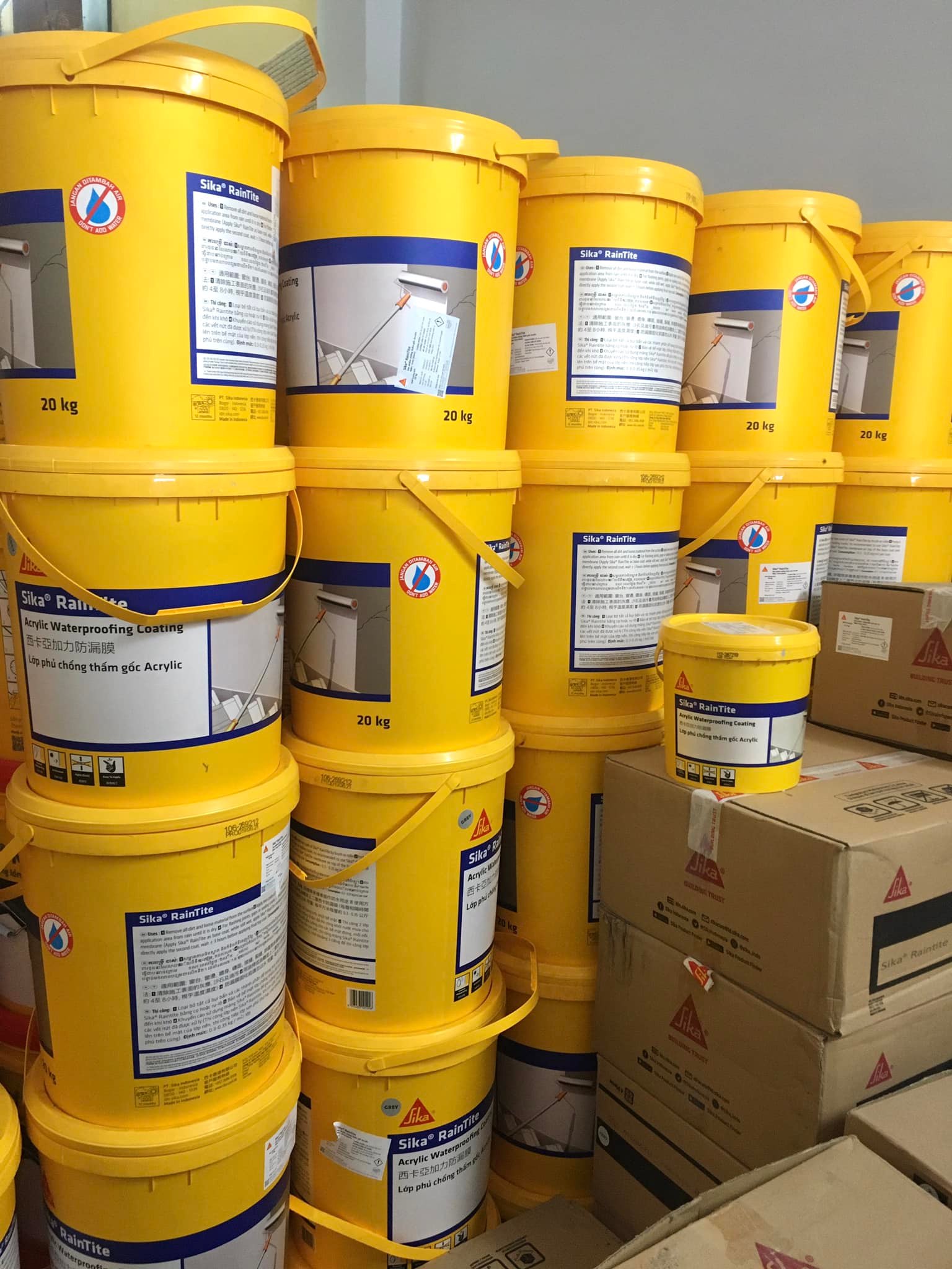 Mô tả: Sika RainTite là Hợp chất chống thấm đàn hồi, kháng UV, dạng sệt gốc Acrylic Đóng gói: 4kg/20kg/Thùng Dạng/màu: Sệt/ màu Trắng và Xám Định mức thi công: 0,3kg/m2/lớp Hạn sử dụng 12 tháng kể từ ngày
