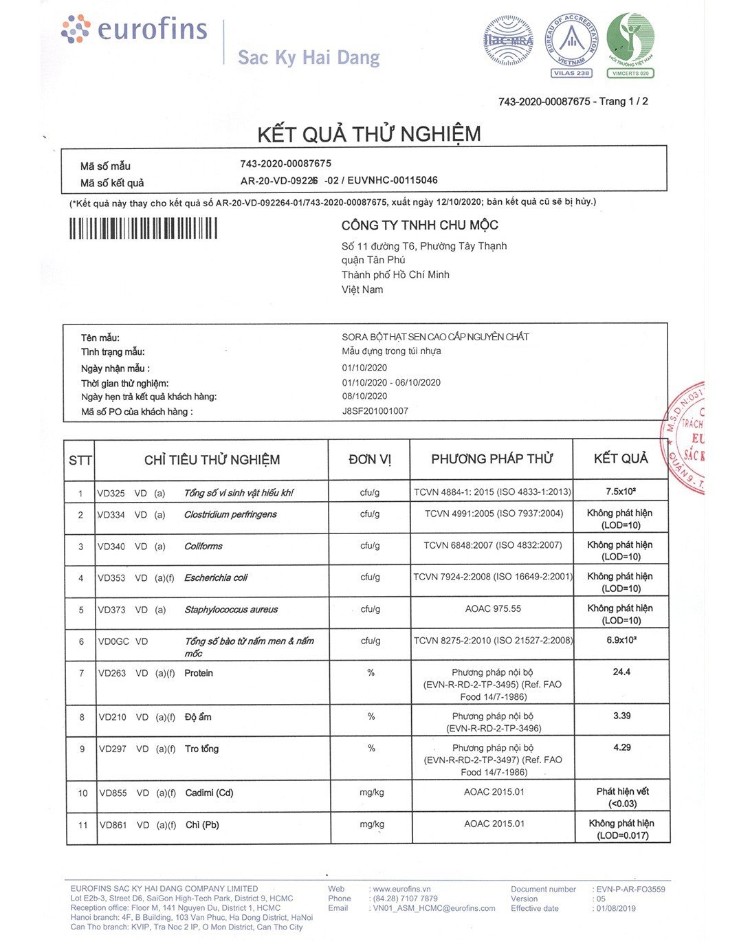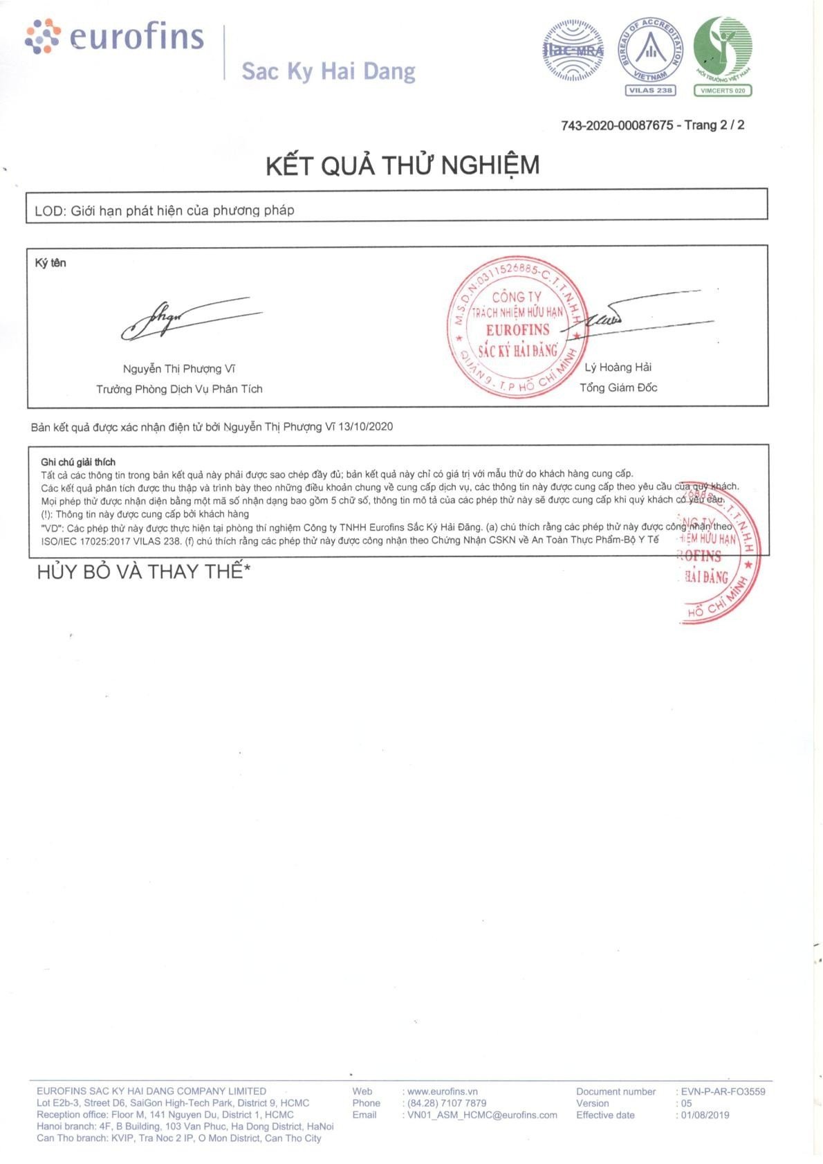• HSD: 12 tháng từ ngày sản xuất và 60 ngày từ ngày mở túi zip.