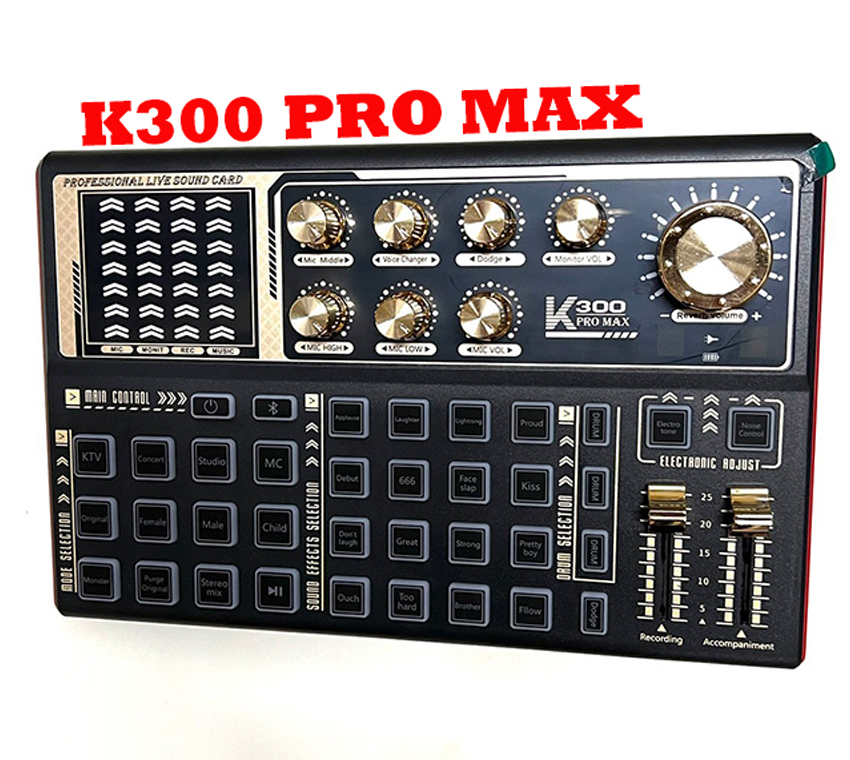 ️ Soundcard hát livestream K300 tích hợp 20 chế độ hiệu ứng khán giả giúp tăng tương tác khi trò chuyện trong buổi livestream: tiếng vỗ tay, tiếng cười, chê bai, quạ kêu, súng bắn,….