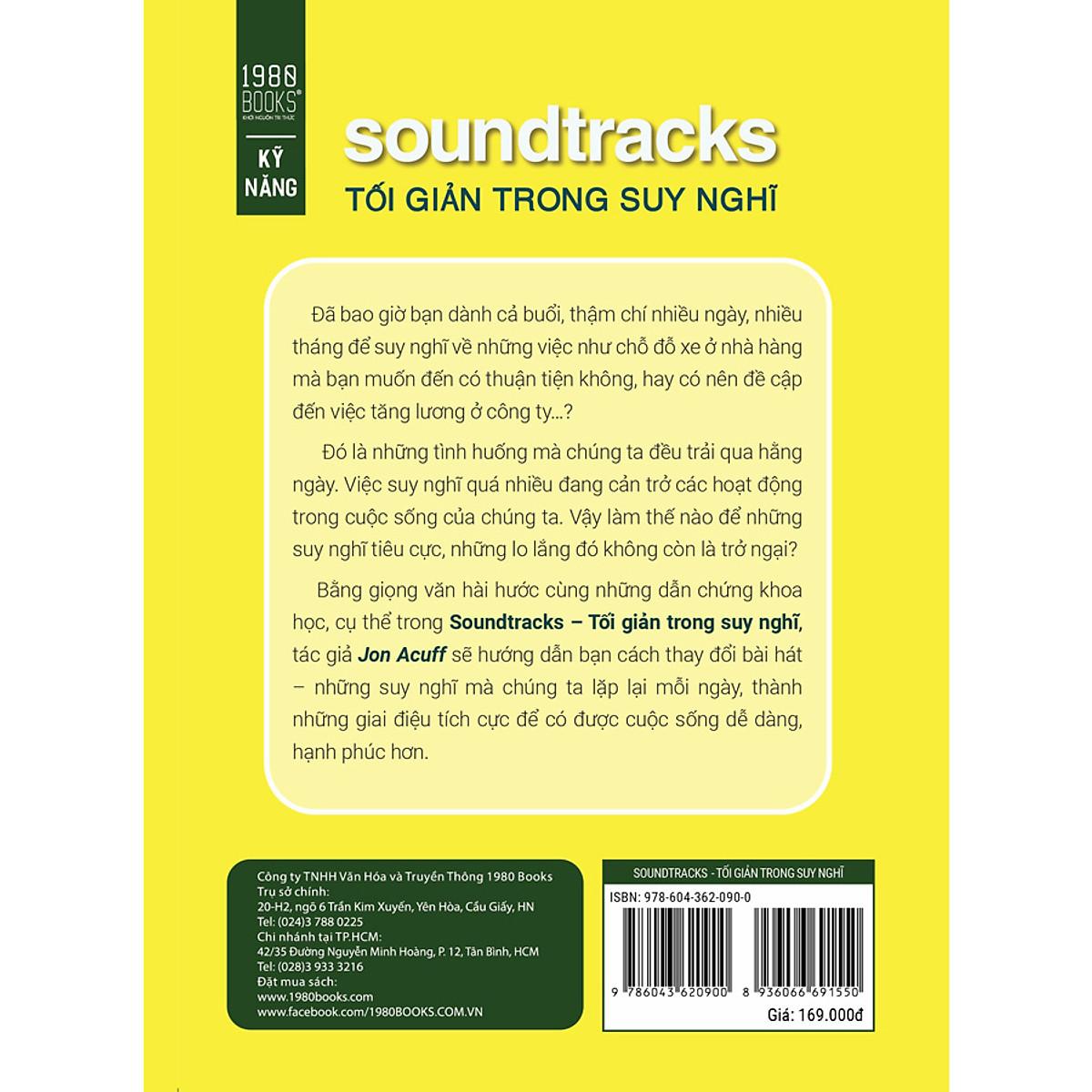 Bằng giọng văn hài hước cùng những dẫn chứng khoa học, cụ thể trong “Sountracks – Tối giản trong suy nghĩ”, tác giả Jon Acuff sẽ hướng dẫn bạn cách thay đổi bài hát – những suy nghĩ mà chúng ta lặp lại mỗi ngày, thành những giai điệu tích cực, để chúng ta có được cuộc sống dễ dàng, hạnh phúc hơn.