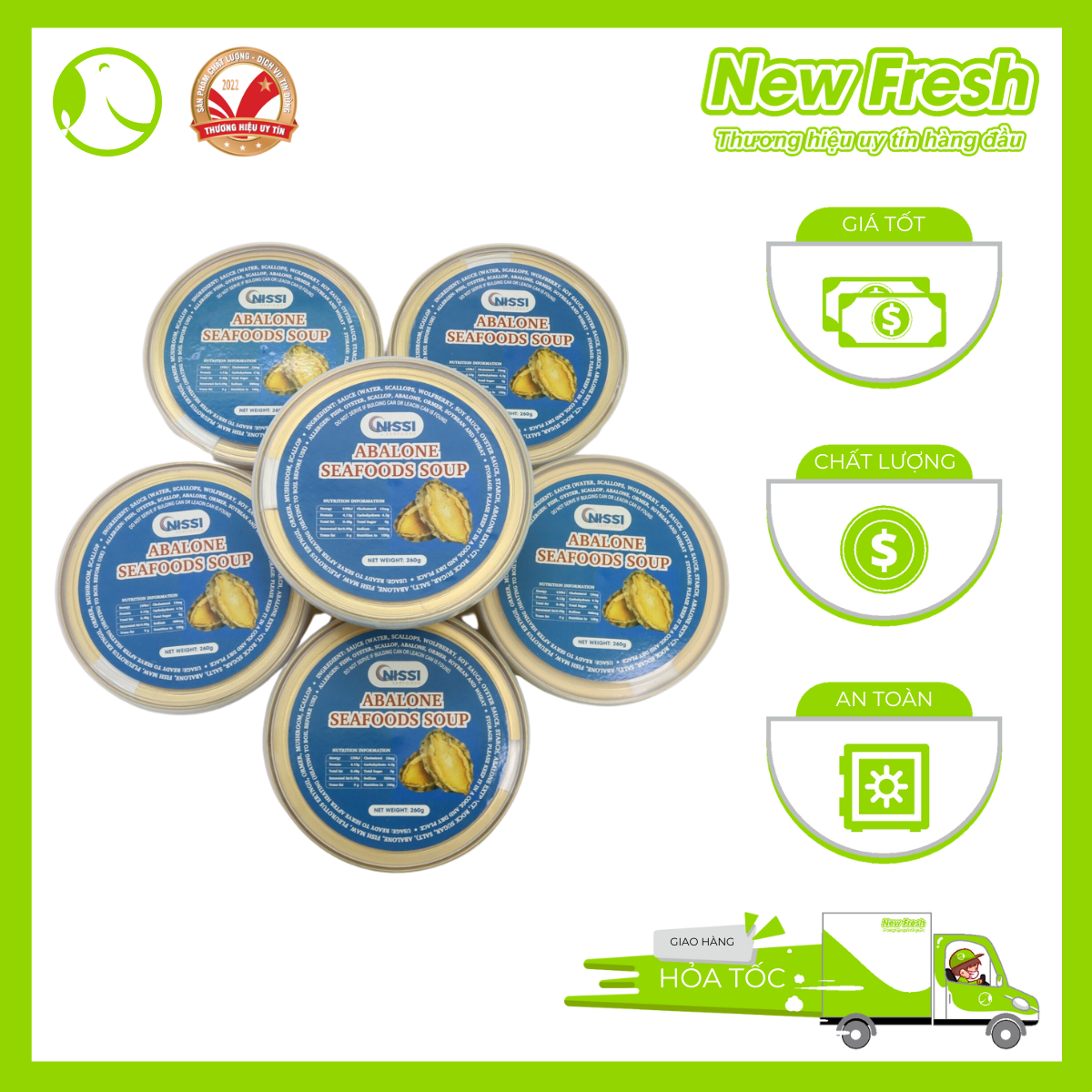 Với sản phẩm tươi sống, trọng lượng thực tế có thể chênh lệch khoảng 10%. SOUP HẢI SẢN BÀO NGƯ NISSI - Xuất xứ: China - Thành phần: Bào Ngư, bong bóng cá, nấm đùi gà, nấm