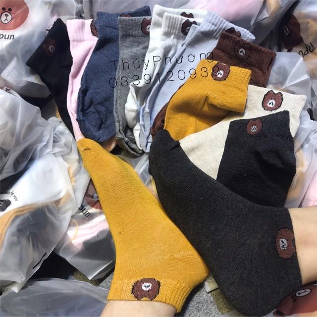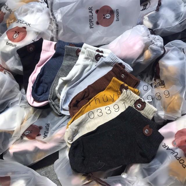 0168 Combo 10 Đôi Tất Gấu Brown Cổ Ngắn Kèm Túi Dây Rút
