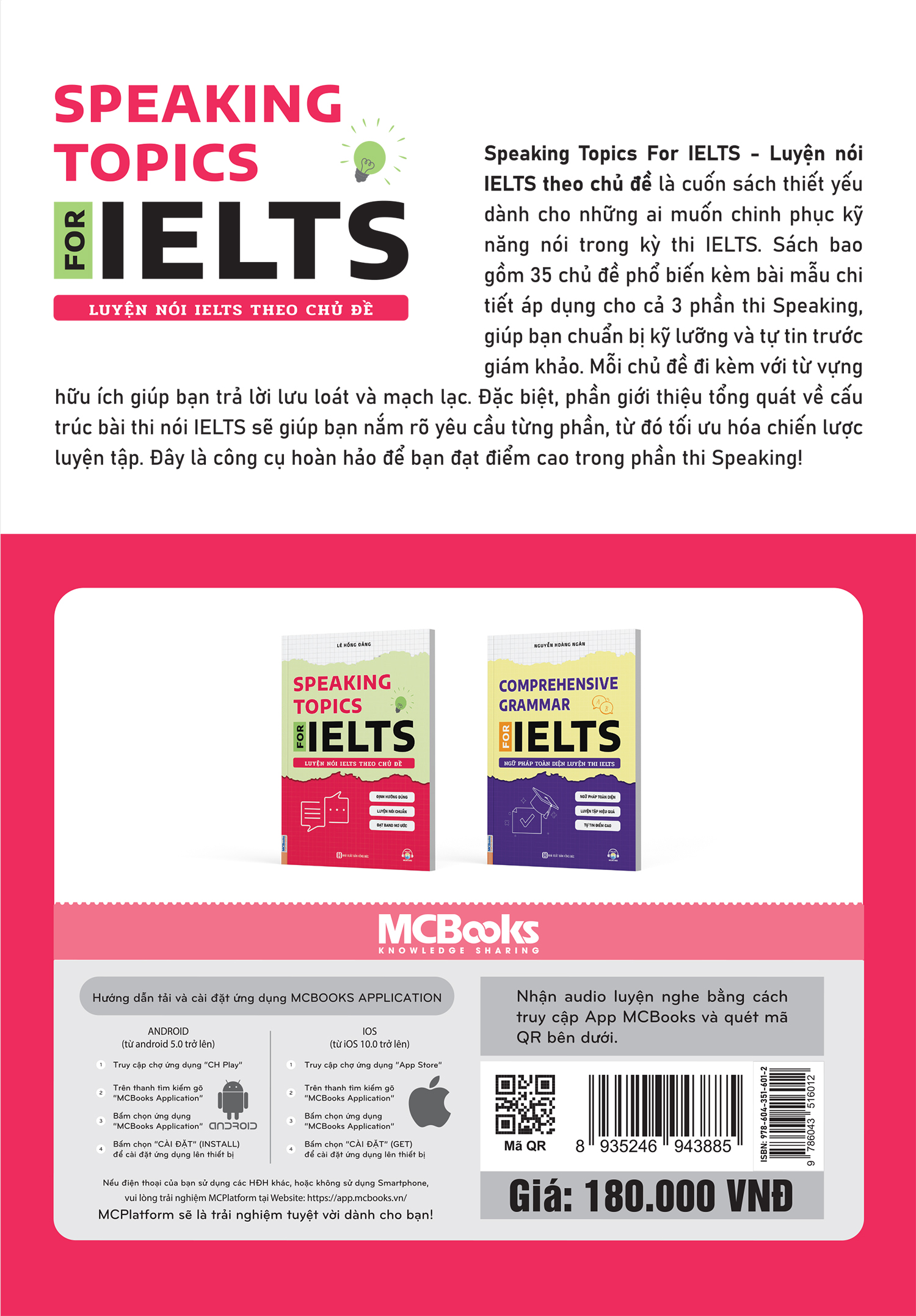 Cuốn sách phù hợp với tất cả các đối tượng, từ những người mới bắt đầu ôn luyện IELTS đến những thí sinh đã có nền tảng và muốn nâng cao band điểm Speaking của mình. Đây là tài liệu không thể thiếu trên hành trình chinh phục mục tiêu IELTS của bạn.