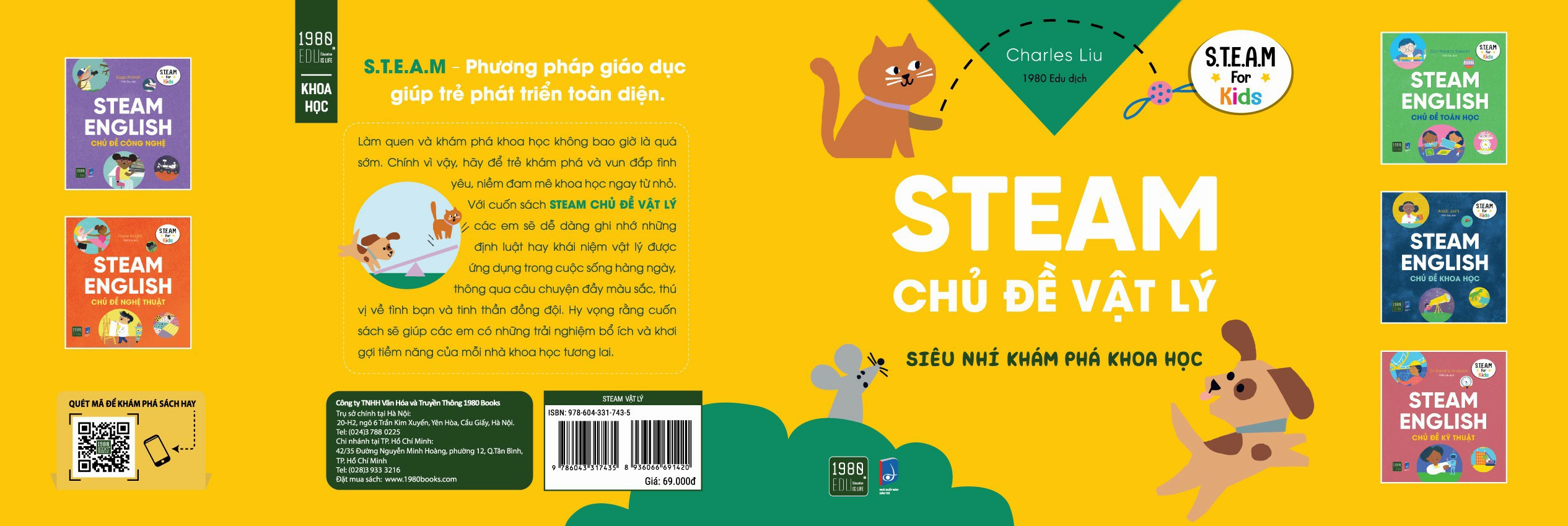 S.T.E.A.M là phương pháp giáo dục hiện đại và giúp trẻ phát triển toàn diện các kỹ năng. Các bạn nhỏ thân mến! Làm quen và khám phá với khoa học không bao giờ là quá sớm. Các em có biết rằng mỗi hành động mà các em tạo ra là một hiện tượng khoa học. Chính vì vậy cuốn sách “STEAM CHỦ ĐỀ VẬT LÝ” sẽ giúp các em hãy khám phá và vun đắp tình yêu, niềm đam mê khoa học của mình. Các em không chỉ được tìm hiểu về những kiến thức khoa học được ứng dụng ngay trong cuộc sống hàng ngày, mà thông qua câu chuyện đầy màu sắc, sinh động và ý nghĩa về tình bạn và tinh thần đồng đội. Các em sẽ lần lượt khám phá và ghi nhớ những khái niệm vật lý siêu thú vị mà nhà khoa học ISSAC NEWTONS đã tìm ra.