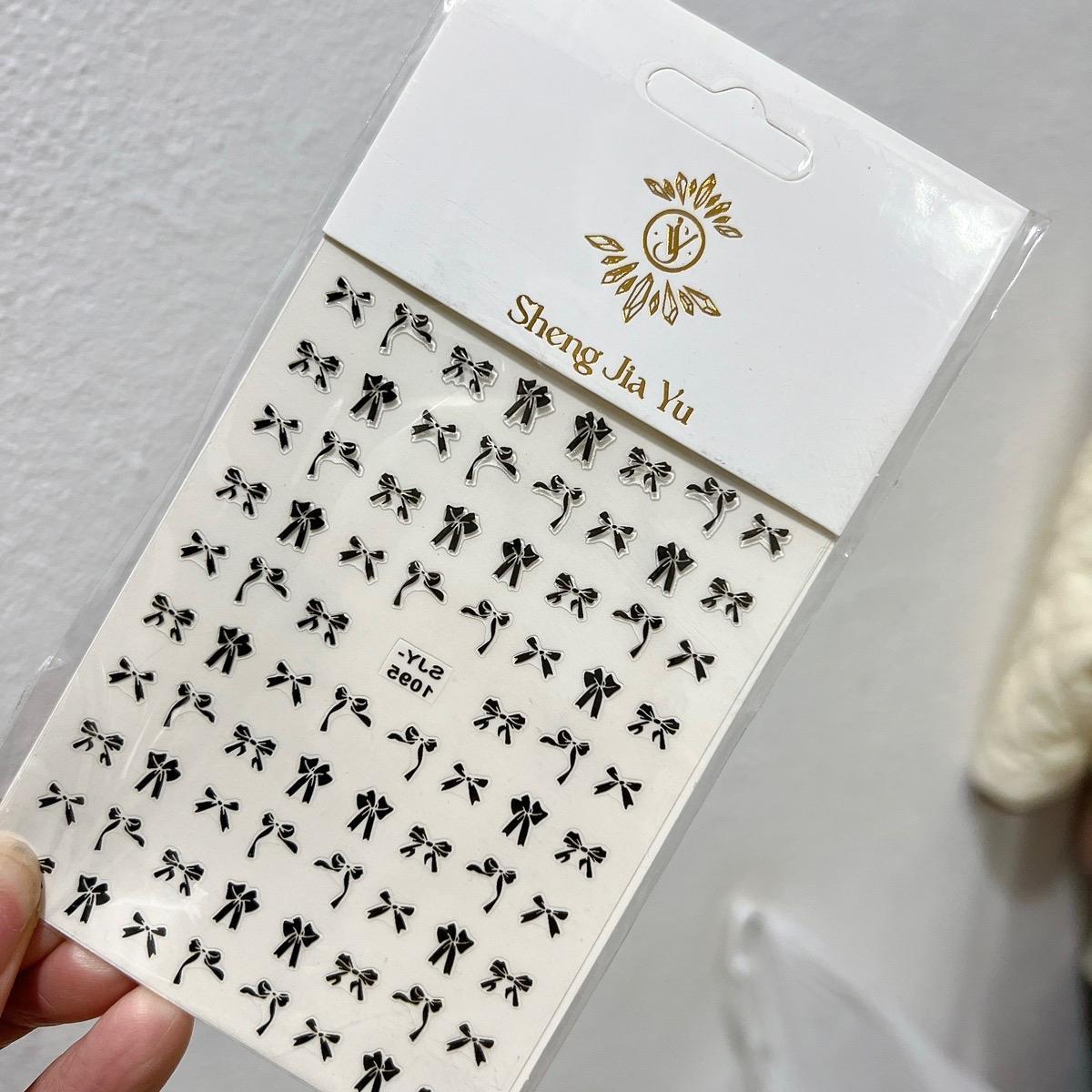 Sticker Hình Nơ 3D Đen Trắng SJY1085 Mix Kiểu Hàn Quốc Dán Móng Siêu Xinh, Hình Dán Móng Nơ Nổi Trắng Đen Sheng Jia Yu Nữ Women STICKER HÌNH NƠ 3D ĐEN TRẮNG SJY1085 –