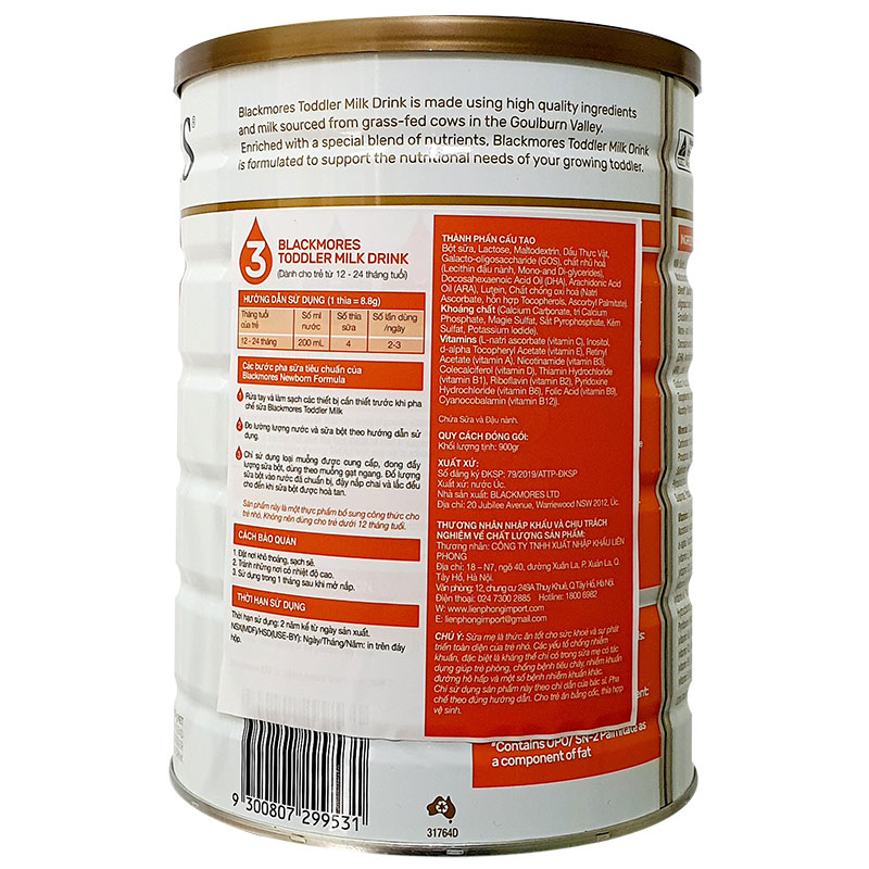 - Sữa Blackmores Toddler số 3 900g dành cho giai đoạn trên 1 tuổi