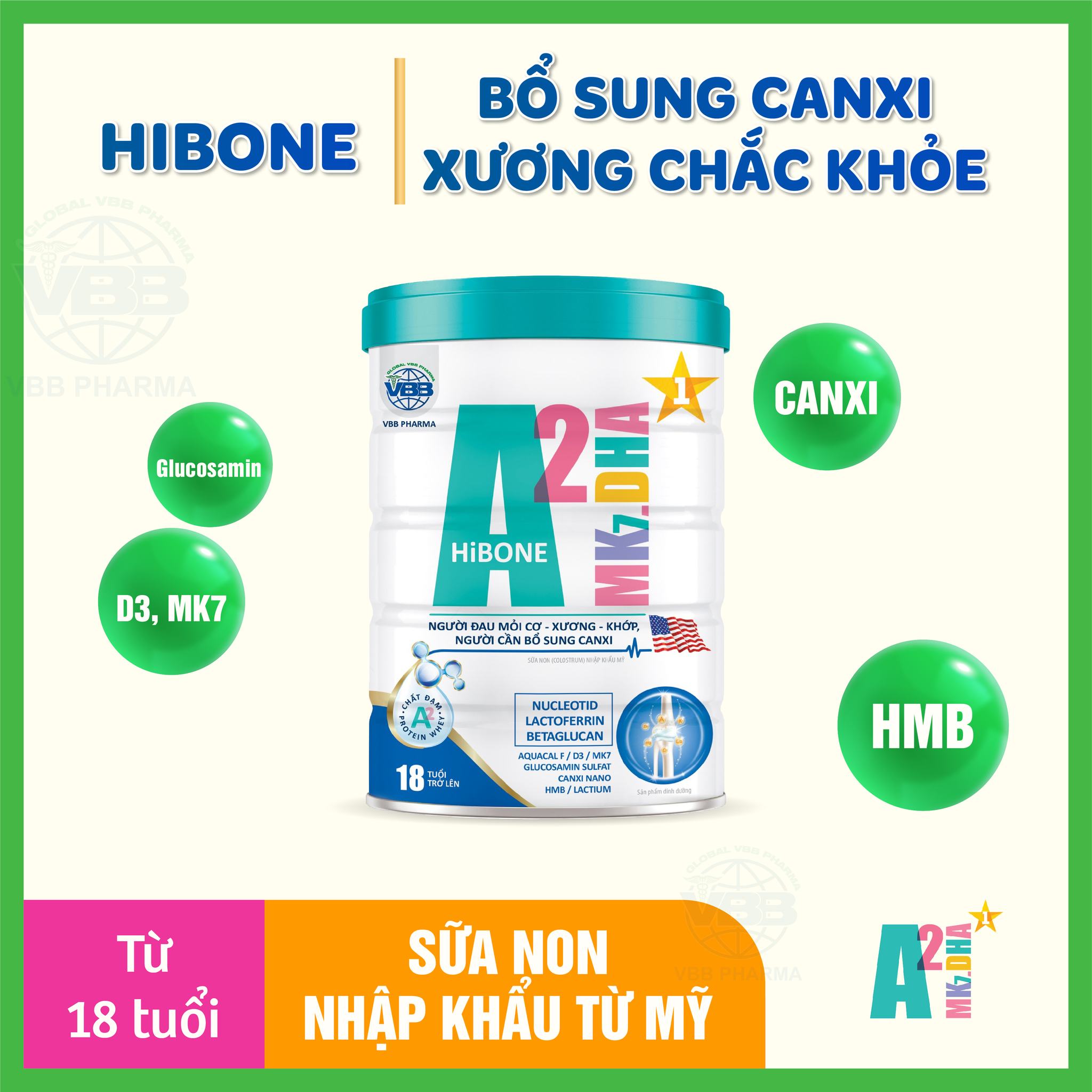 Mua tại TiktokA2 Mk7.DHA HiBone- GIÚP HỆ XƯƠNG VỮNG CHẮC - GIÚP SỨC KHỎE VỮNG VÀNG Một ly sữa A2 HiBone được sản xuất theo công thức chuyên biệt sẽ giúp cơ thể vừa cung cấp canxi, các hợp chất giúp hình thành và bảo vệ hệ xương chắc khỏe hơn vừa có thể mang đến năng lượng mỗi ngày. Sữa A2 Bone - Công Thức Cải Tiến Ngôi Sao Số 1 dùng thay thế bữa ăn phụ hoặc bổ sung cho chế độ ăn hàng ngày thiếu vi chất dinh dưỡng, phù hợp với nhu cầu dinh dưỡng của người cao tuổi. Với nguồn Vitamin, khoáng chất đa dạng, dinh dưỡng dễ hấp thu.