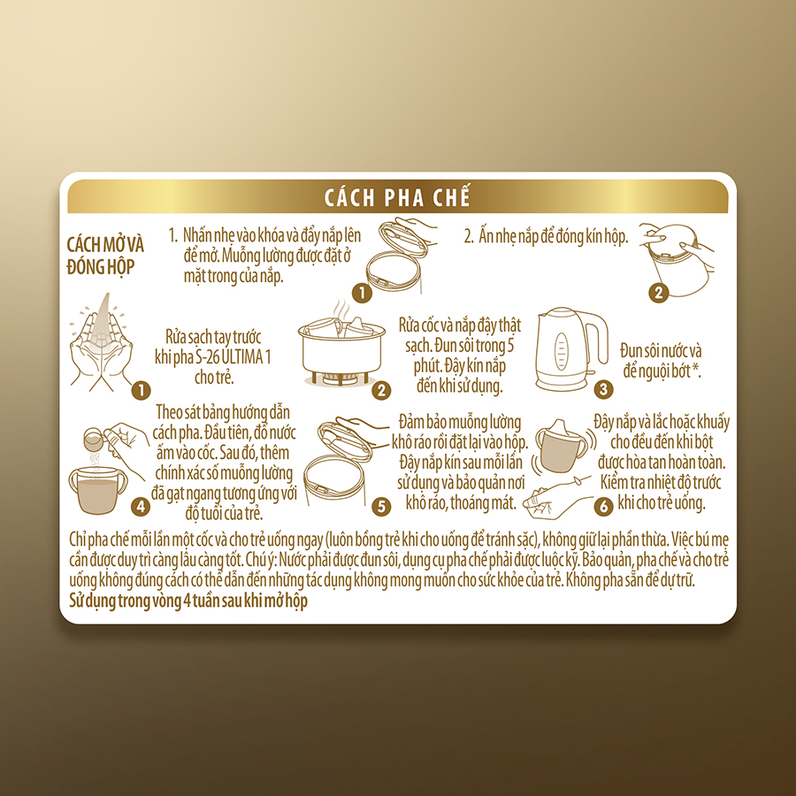 - Rửa sạch tay trước khi pha S-26 ULTIMA 1 cho trẻ.