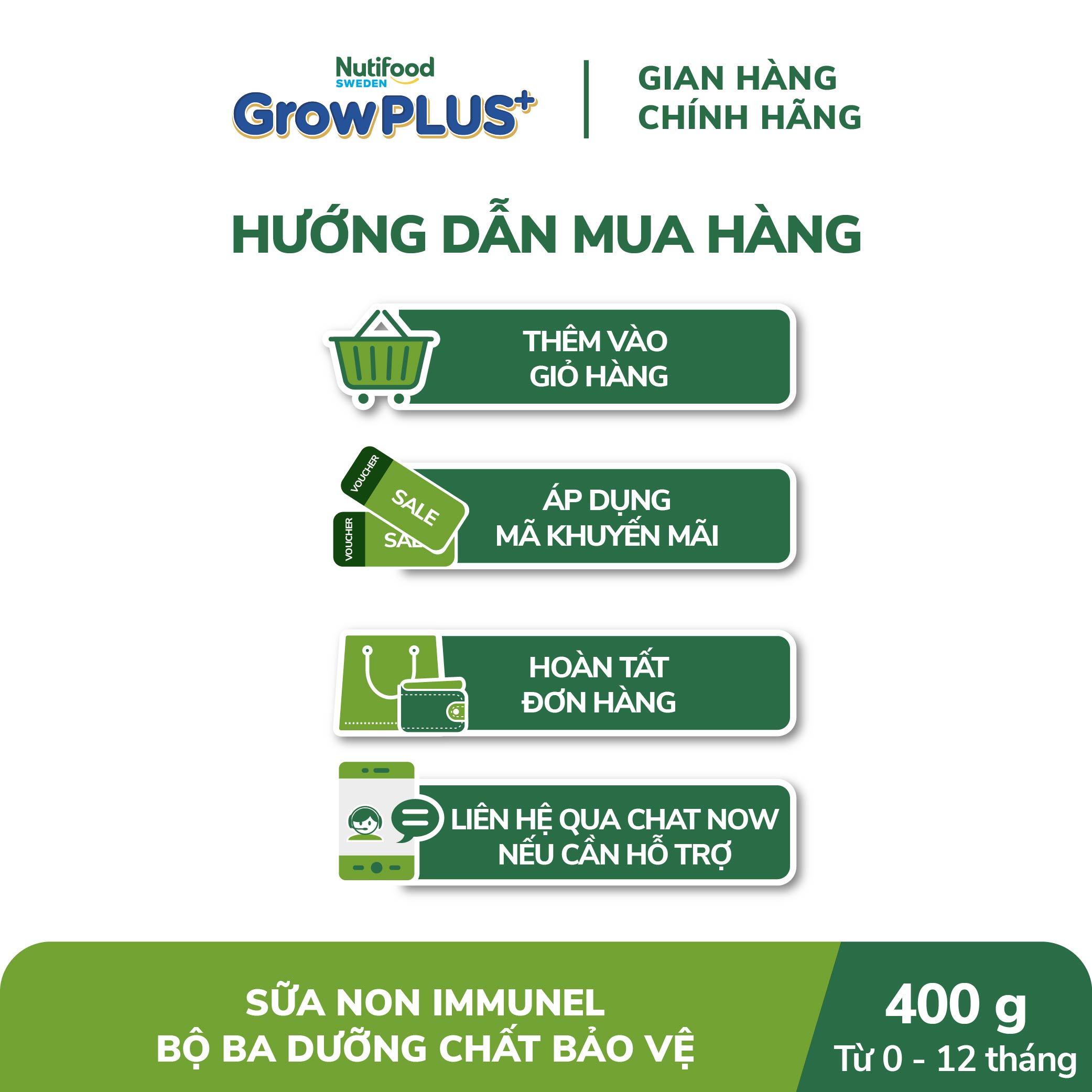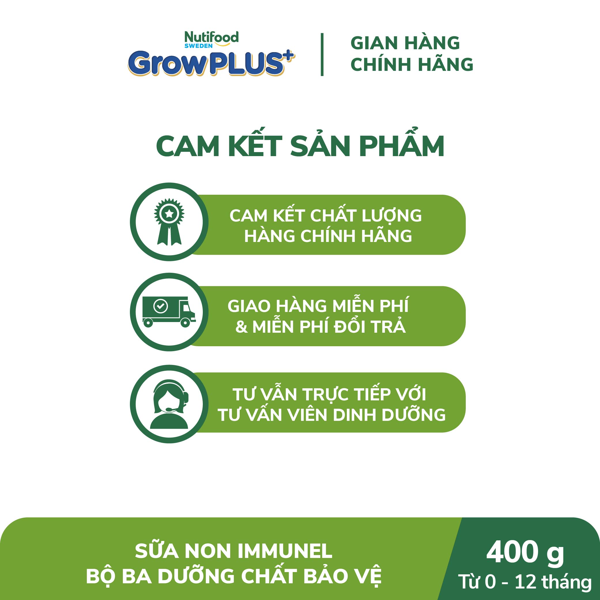 Sữa Bột Nutifood Sweden GrowPLUS+ Sữa Non Immunel với công thức đột phá được phát triển bởi Nutifood Thụy Điển, xây dựng nền tảng FDI hỗ trợ đề kháng khỏe, tiêu hóa tốt giúp chuyển hóa tốt các dưỡng chất. Công thức bộ ba dưỡng chất bảo vệ (1) với Immunel từ Mỹ, kết hợp 100% sữa non 24h chứa kháng thể IgG và 2’-FL HMO, hỗ trợ tăng cường đề kháng, cho bé khỏe mạnh.
