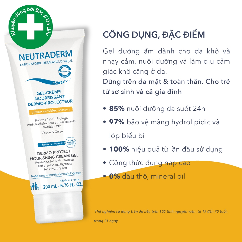 Cách dùng: Lấy 1 lượng kem vừa đủ vào tay và nhẹ nhàng thoa lên da mặt và toàn bộ cơ thể sau khi đã được làm sạch vào buổi sáng và buổi tối hoặc nhiều hơn nếu cần. Chỉ tiêu kích ứng: Không gây kích ứng da. Thành phần: Như trên bao bì. Điều kiện bảo quản: Nhiệt độ thường hoặc mát, nơi khô ráo, tránh ánh sáng chiếu trực tiếp, đóng nắp sau khi sử dụng. Lưu ý: sau khi sử dụng sản phẩm mà da bị nổi đỏ hay mẩn ngứa vui lòng rửa lại thật sạch & ngưng sử dụng sản phẩm, chống chỉ định cho những người dị ứng với những thành phần có trong sản phẩm. Thể tích thực: 200ml. Số đăng ký : 175931/22/CBMP-QLD. Nước sản xuất: Pháp. Nhà Nhập Khẩu: CÔNG TY CỔ PHẦN THƯƠNG MẠI DƯỢC MỸ PHẨM ĐÀO TIẾN. 138 Đường Số 3, Khu Dân Cư Trung Sơn, Xã Bình Hưng, Huyện Bình Chánh, Thành Phố Hồ Chí Minh, Việt Nam. Nhà Phân Phối: CÔNG TY TNHH HOÀNG VÂN TRỊNH. Tầng 8,Cao Thắng Mall, 19 Cao Thắng, Phường 02, Quận 3, Thành Phố Hồ Chí Minh, Việt Nam. Số lô và Hạn sử dụng: Xem EXP trên bao bì sản phẩm