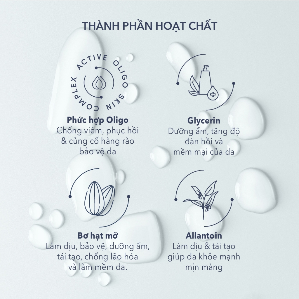 Chỉ định: Da chàm, viêm da cơ địa, dị ứng, ngứa, mẩn đỏ Cách dùng: Lấy một lượng kem dưỡng vừa đủ, thoa lên da và massage cho đến khi thẩm thấu. Dùng bất cứ khi nào