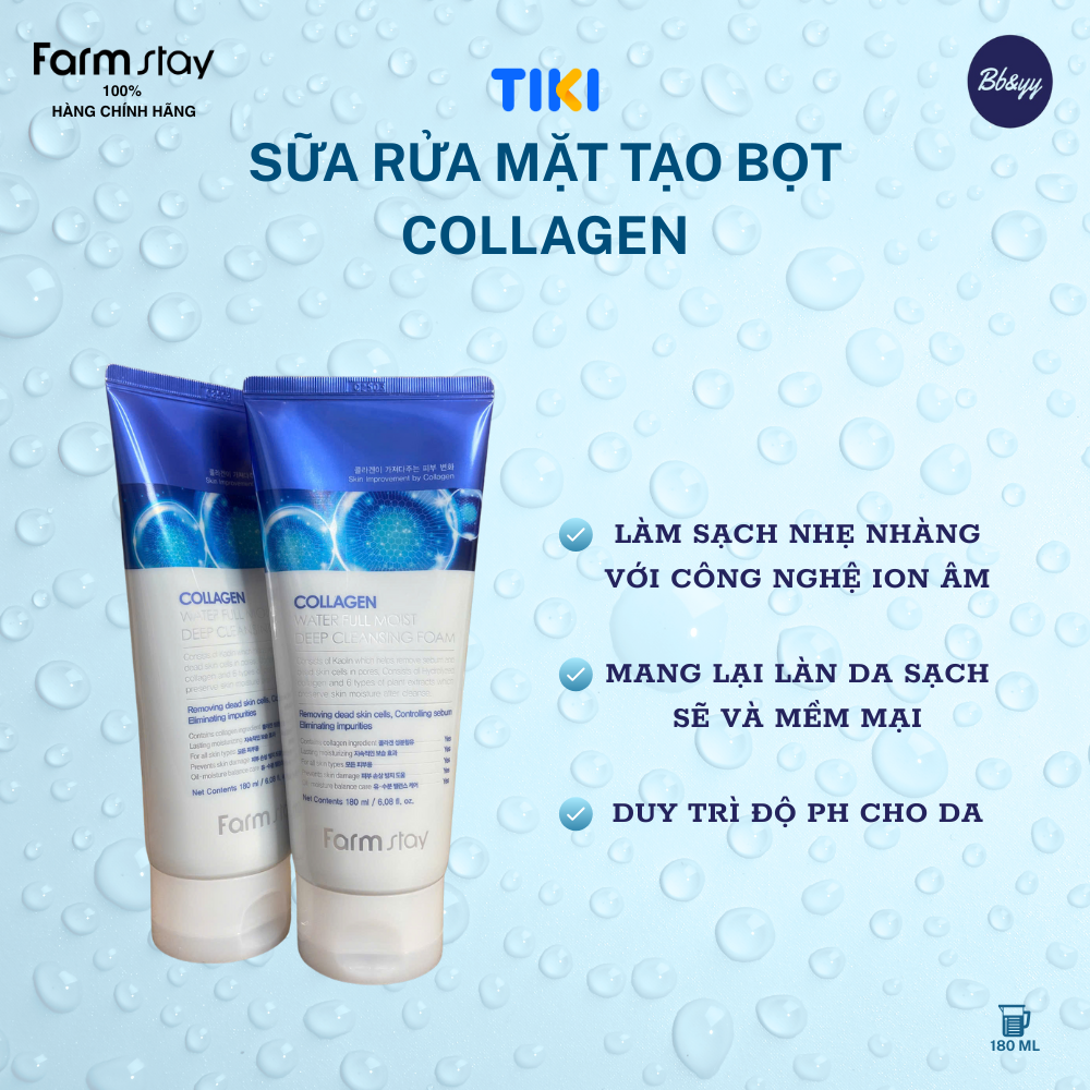 Sữa Rửa Mặt FARMSTAY Collagen Dưỡng Ẩm Sâu 180ml THÔNG TIN SẢN PHẨM: • Đơn vị tính và Quy cách đóng gói: Một Tuýp – 180ml. • Nước xuất xứ: sản xuất tại Hàn