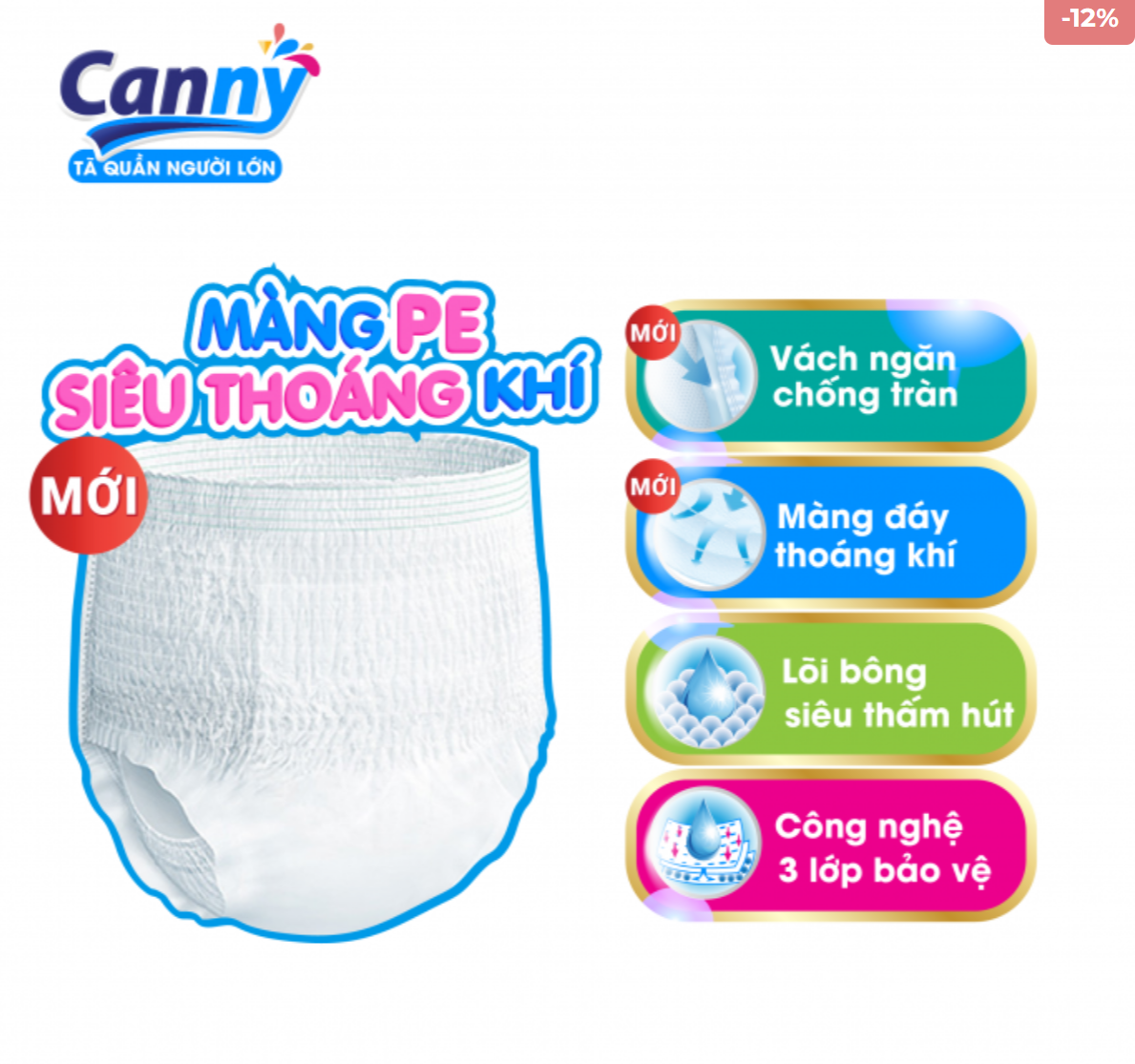 - Tã quần người lớn Canny Lõi siêu thấm Tã quần người lớn Canny Chức các hạt siêu thấm khoá chặt các chất lỏng, giúp da luôn khô thoáng.