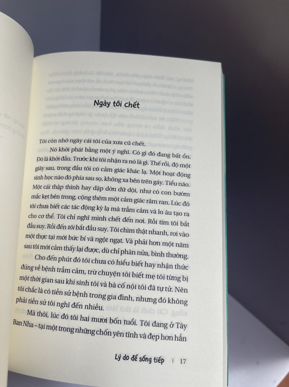 Ở tuổi 24, trong khi chịu đựng một cơn trầm cảm nặng nề, Matt Haig đã nghĩ đến việc chấm dứt đời mình. Thế nhưng, đứng bên bờ vực thẳm, đã có những điều giữ anh lại với cuộc đời. Lý do tiếp tục sống là câu chuyện chân thật về hành trình từng phút, từng ngày anh vượt qua căn bệnh, nhờ vào việc đọc, việc viết, nhờ vào tình yêu của cha mẹ cùng người bạn gái Andrea, mà nay đã trở thành vợ anh.