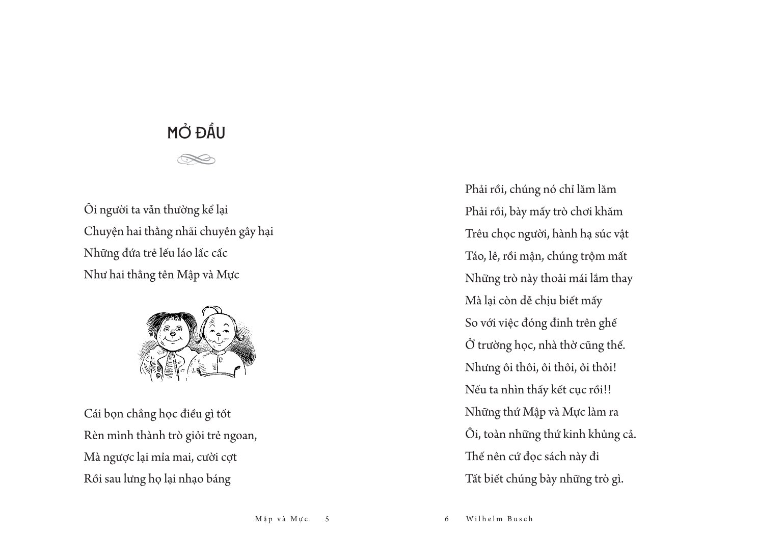 Mập và Mực là cuốn truyện tranh đầu tiên trên thế giới, là một trong những tác phẩm kinh điển, tiêu biểu nhất của văn học thiếu nhi Đức. Trong truyện thơ hài hước, “thuốc đắng dã tật” này, hai thằng nhóc Mập và Mực bày đủ trò nghịch tinh nghịch quái...