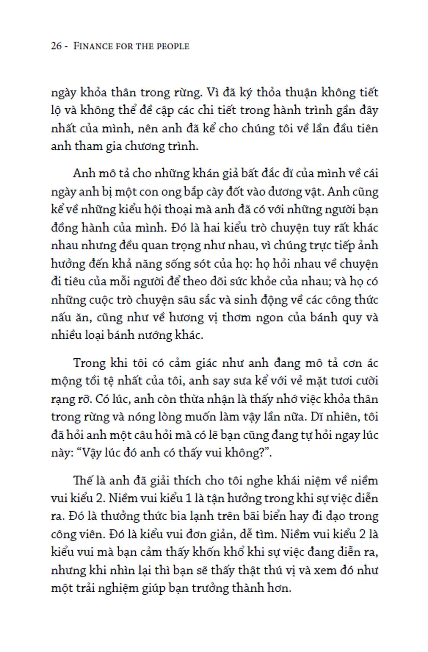 Không giống hầu hết các sách tài chính cá nhân khác vốn chỉ tập trung vào kỹ năng, hành vi và công cụ, “Tài chính cho mọi người” (tựa gốc: “Finance for the People”) mời gọi bạn phân tích những niềm tin, cảm xúc và trải nghiệm của chính bạn với tiền bạc. Thông qua cách tiếp cận dễ hiểu, giàu sự cảm thông và chiêm nghiệm cá nhân, Paco De Leon giúp bạn thay đổi những niềm tin và hành vi tài chính tiêu cực, hướng đến một “mối quan hệ” lành mạnh, tích cực và tươi sáng hơn.