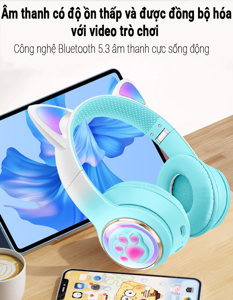 Tai nghe mèo bluetooth PAGINI VZV 23M đèn LED đổi màu – Siêu đáng yêu – Hàng nhập khẩu 1