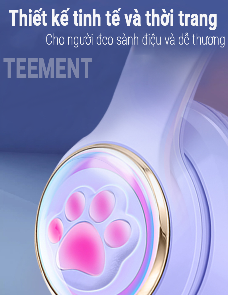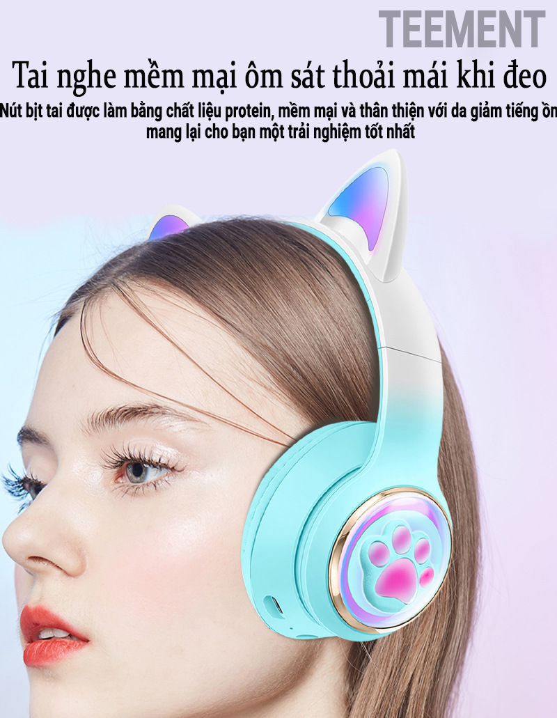 Tai Nghe Bluetooth Tai Mèo Phát Sáng Teement, Tai Nghe Không Dây, Tai Nghe Chụp Tai Bluetooth 5.3, Đèn Led Và Âm Bass Mạnh Mẽ -hàng Chính Hãng   Mô tả sản phẩm Tai nghe
