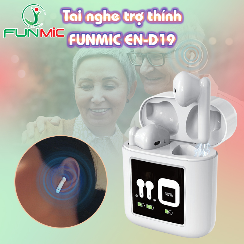 Mua tại TiktokTai nghe trợ thính không dây FUNMIC EN-D19 dòng cao cấp, máy phù hợp cho người già, người lớn tuổi hay bị điếc, lãng tai, có vấn đề về thính giác từ nhẹ tới nặng Bạn đang tìm mua máy trợ thính cho ông bà cha mẹ sử dụng thì tai nghe trợ thính không dây FUNMIC EN-D19 là một lựa chọn rất đáng để bạn tham khảo. Với thiết kế dạng tai nghe nhỏ gọn, trọng lượng siêu nhẹ, ông bà cha mẹ sẽ có cảm giác thoải mái khi đeo. Hệ thống xử lý âm thanh hiện đại giúp âm thanh được tái tạo một cách chân thật, khuyết đại âm giúp người thân của bạn nghe rõ mọi âm thanh từ cuộc sống. Gọi ngay 1900 2807 để đặt mua tai nghe trợ thính không dây FUNMIC EN-D19 với giá tốt, hàng chính hãng. "FUNMIC thương hiệu Việt vì sức khỏe người Việt" Đặc điểm nổi bật của tai nghe trợ thính không dây FUNMIC EN-D19: