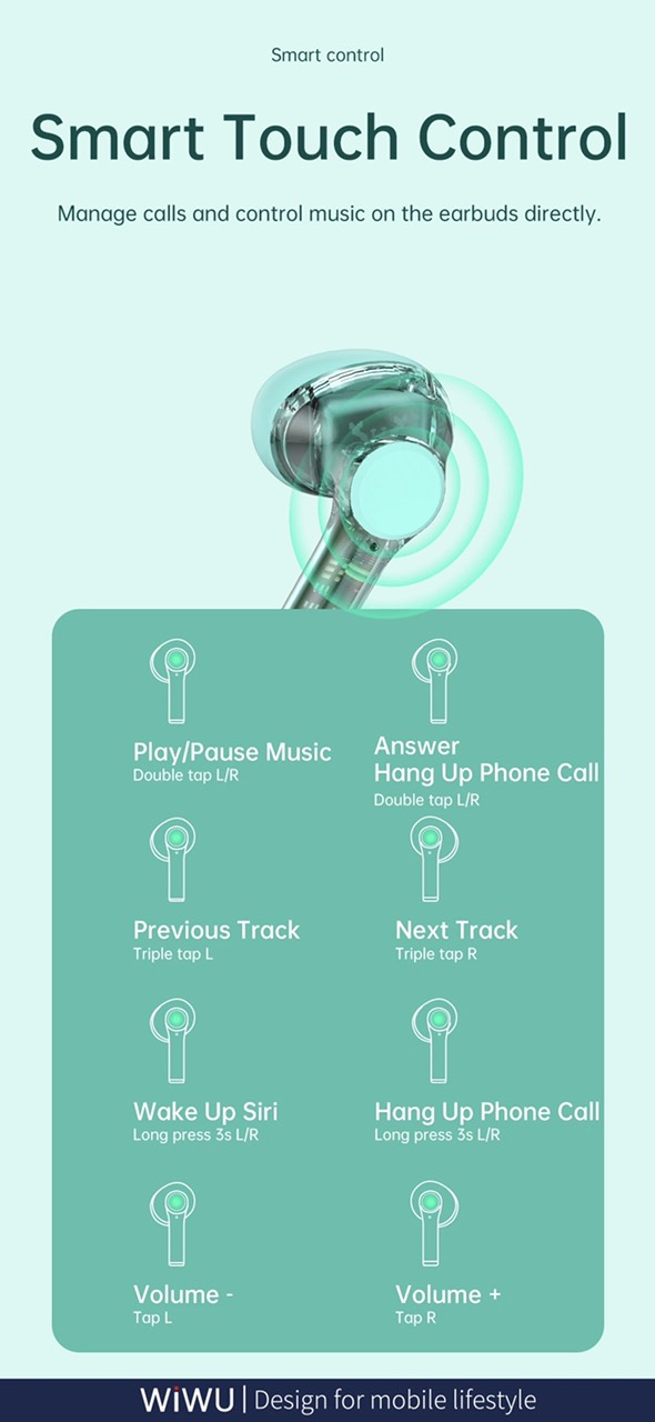 Tai nghe Cobra 2 Thương hiệu: Wiwu Thông tin sản phẩm - Thiết kế tai nghe nước thể thao có độ trễ thấp để chơi game - Tai nghe có chế độ chờ lâu với