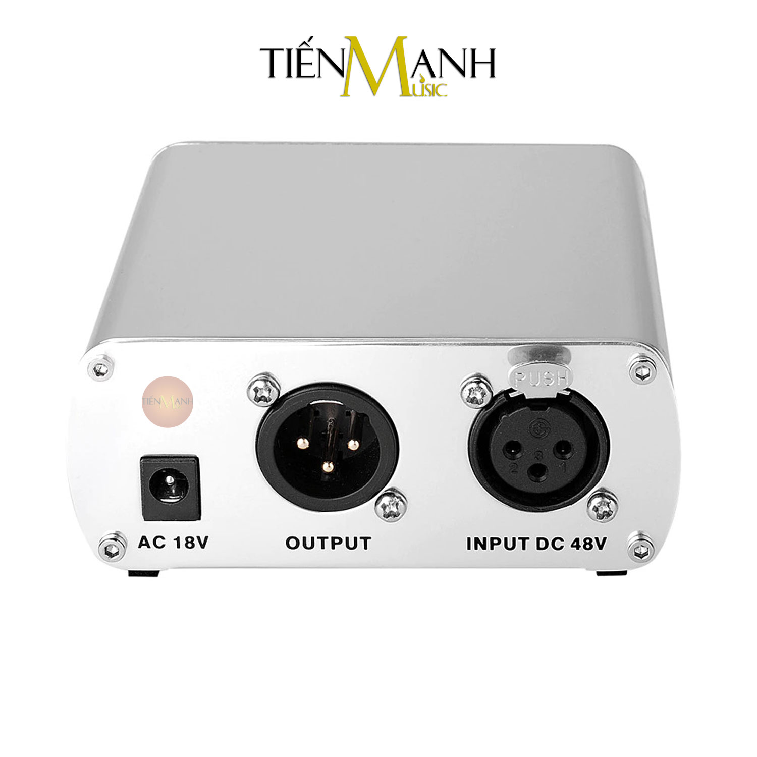 - Sản phẩm gồm cổng input, output, vị trí cắm nguồn và một cục sạc ngoài. Takstar phantom cấp nguồn 48V cho mic hoạt động, xử lý tín hiệu thu vào của mic, đồng thời triệt tiêu các âm nhiễu điện, tăng cường độ nét của âm thu.