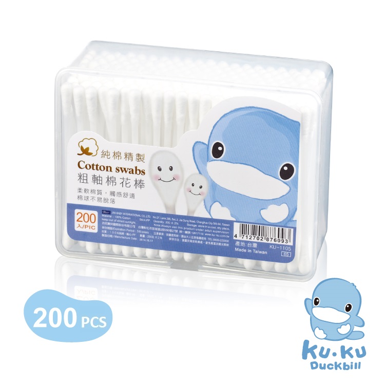 Tăm Bông Vệ Sinh Cho Bé KUKU KU1106 - 200 Cái làm bằng chất liệu cotton cao cấp, mềm mại, thấm hút nhanh chóng giúp vệ sinh tai, rốn... hiệu quả, không gây tổn thương bé.